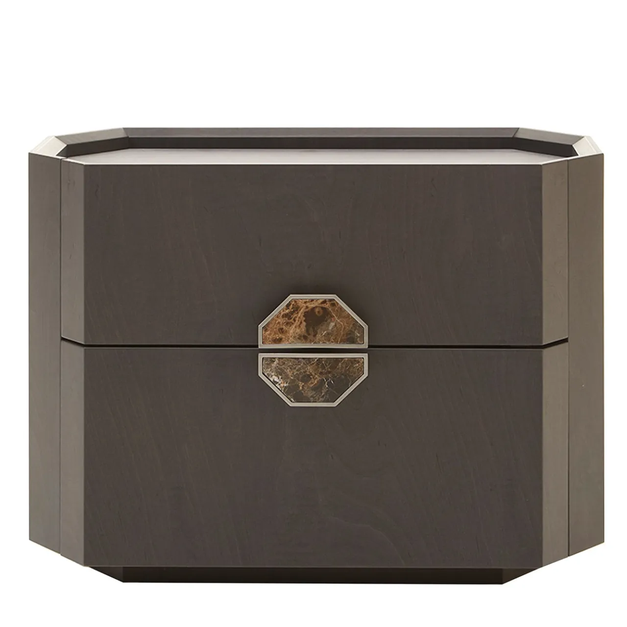 Comò a 2 cassetti con piano in legno, finiture in metallo, apertura con maniglie – finitura Pantera Matt, metallo ottone brunito.
