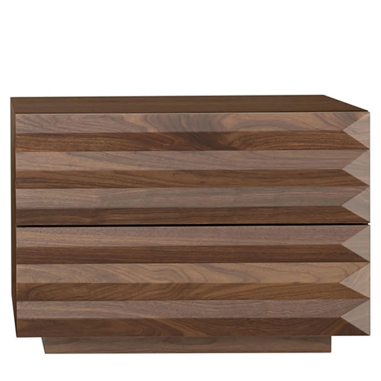 Comodino Modi con 2 cassetti interamente realizzato in noce canaletto. I cassetti sono realizzati anche internamente in noce canaletto e scorrono su guide ammortizzate.