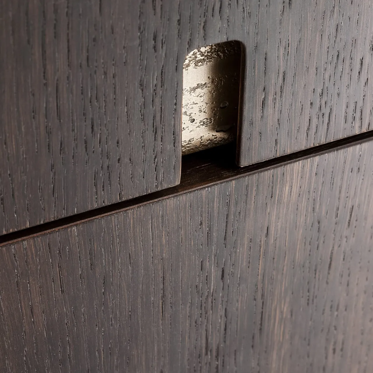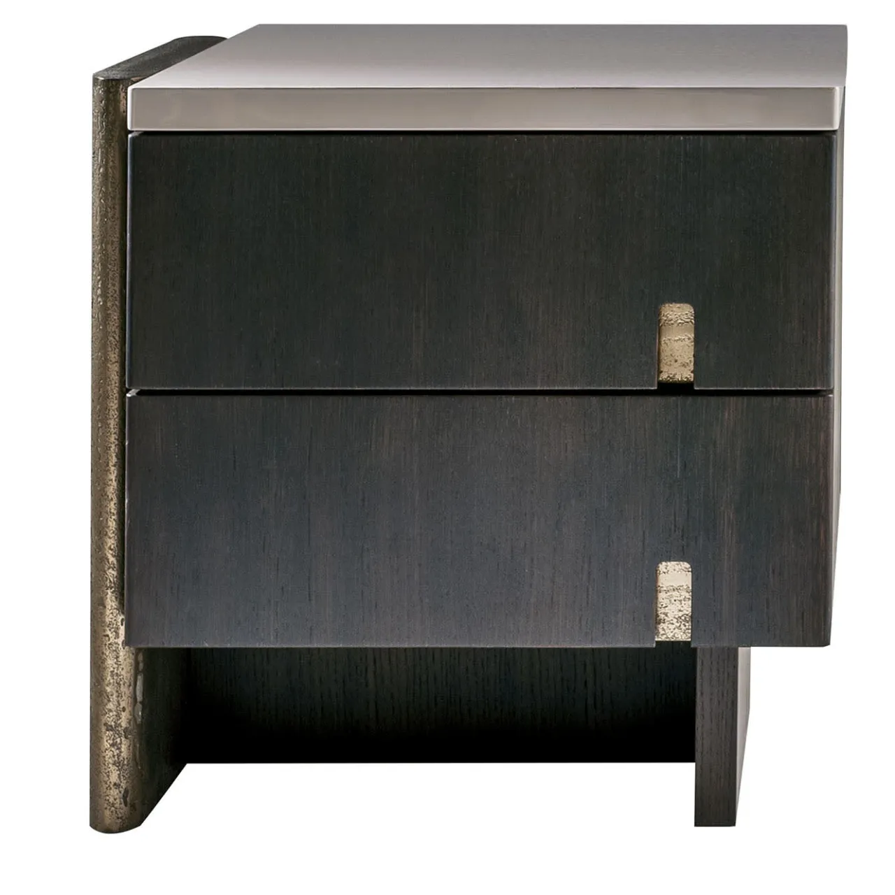 Questo straordinario comodino unisce il calore del legno naturale con accenti metallici. La struttura è realizzata in rovere Termocotto, completata da un piano in legno laccato lucido. Le gambe e le maniglie sono dettagliate con una finitura in metallo liquido bronzeo, conferendo al pezzo un fascino raffinato e moderno. Disponibile in una varietà di finiture in legno e colori laccati per adattarsi a qualsiasi stile. Disponibile anche nella versione sinistra. Contatta il Concierge per esplorare le possibilità di personalizzazione.