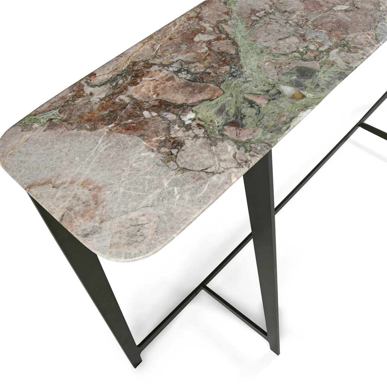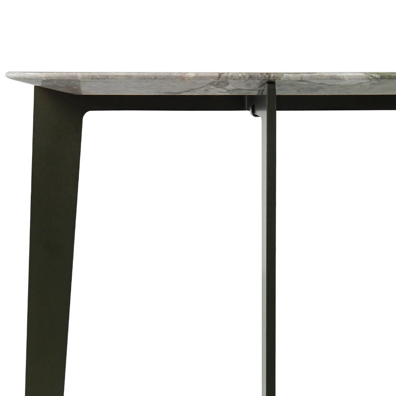 BSeries è una collezione compatta di superfici versatili—tavoli console, scrivanie e tavolini—unite dalla geometria audace delle loro gambe metalliche, abbinate a grandi ma sottili piani in marmo. La base in metallo é dotata di piedini protettivi in plastica. Mostrato: finitura in metallo Y22OUI Verde Samoa, piano in marmo Iris Heaven. Progettato da Carlo Bimbi. Finiture personalizzate e certificazioni sono disponibili tramite Concierge.