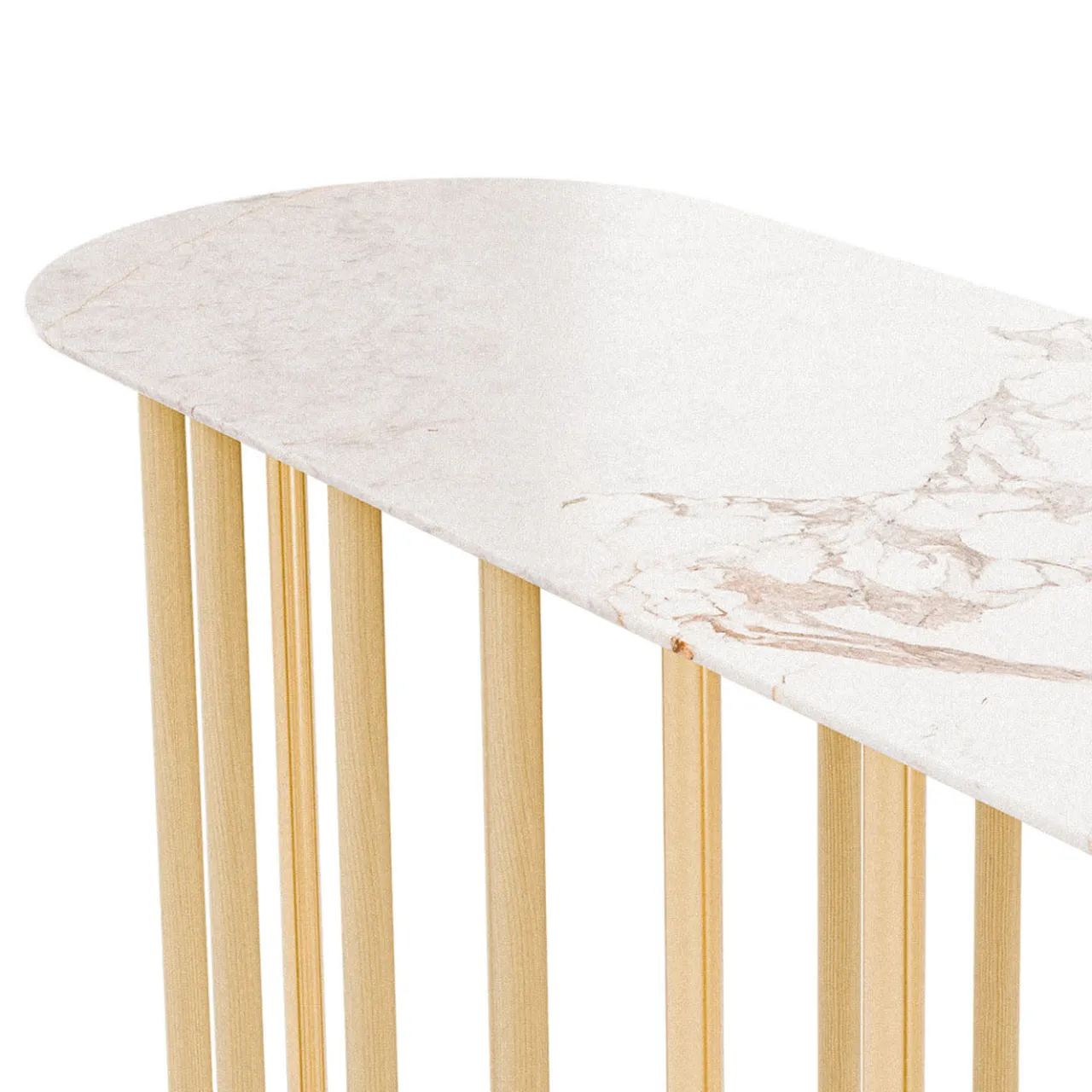 L’eleganza senza sforzo delle canne (“giunchi” in italiano) è l’ispirazione di questa scultorea consolle freestanding. Sormontata da una luminosa lastra di marmo bianco Calacatta, la struttura portante in cedro è composta da elementi verticali di diversa lunghezza, disposti in modo da tracciare un profilo sinuoso di rara raffinatezza. Chiedete al Concierge le opzioni di personalizzazione disponibili e le varianti di 120x40xH90 e 140x40xH90 cm.