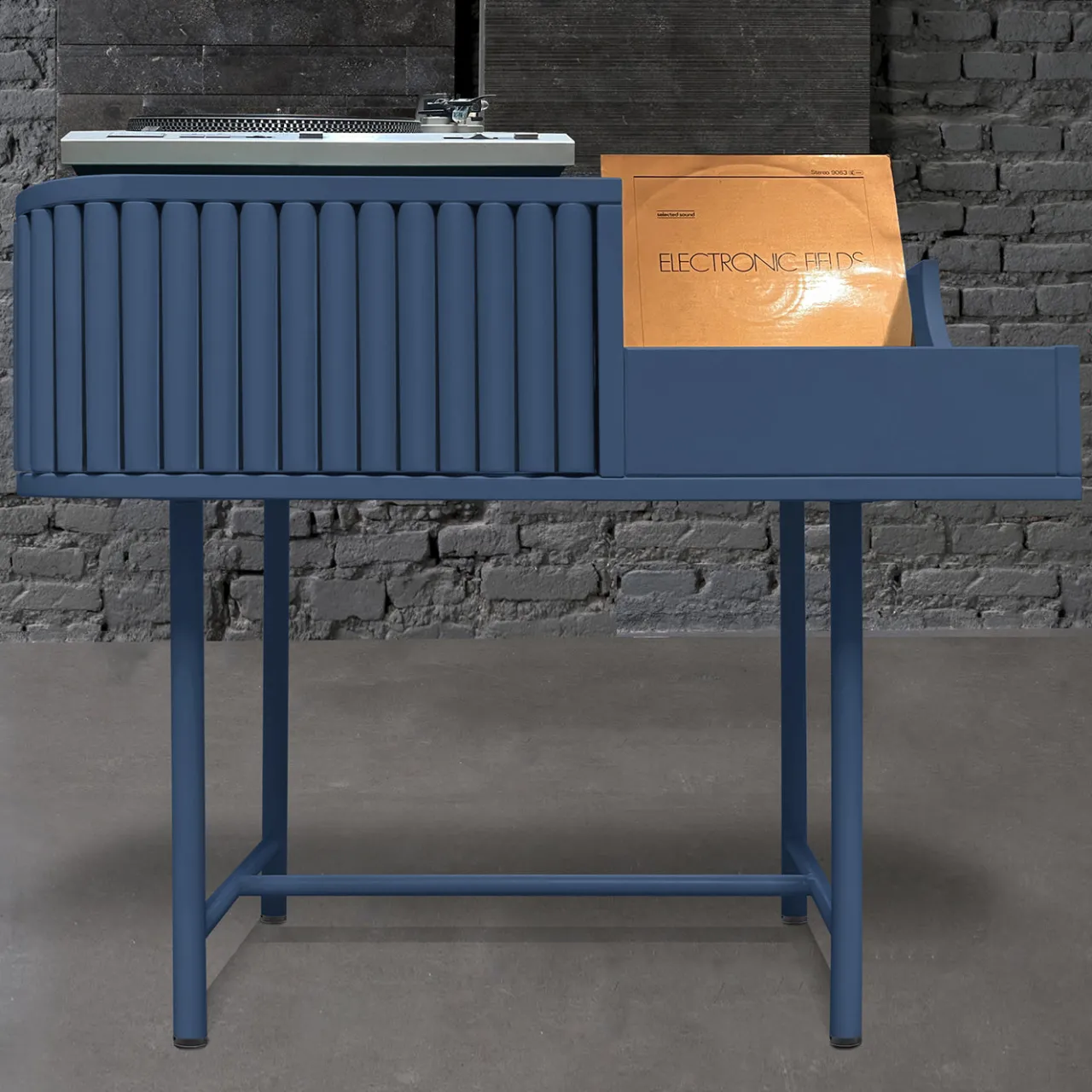 Con la sua calda finitura blu oltremare e il design senza tempo, questa console per giradischi porta un senso di eleganza a qualsiasi interno. Le doghe verticali e il frontalino curvo creano una silhouette visivamente gradevole, mentre la robusta costruzione in MDF garantisce un utilizzo duraturo. Dotato di porte a spinta e tiraggio facili da usare e di piedi stabilizzanti, questo pezzo offre uno spazio di archiviazione pratico per dischi in vinile e apparecchi audio. Disponibile in 12 colori, è una soluzione ideale per spazi moderni e classici.