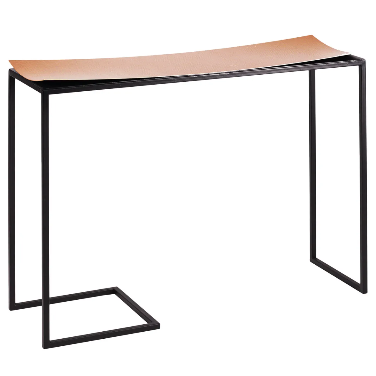 Tonalità ipnotiche e sofisticate contraddistinguono questo magnifico design di Domenico De Palo, una splendida consolle che sarà il complemento ideale per una casa contemporanea. Montato su una struttura in metallo laccato nero, il suo elemento distintivo è un piano leggermente curvo che vanta una scintillante tonalità dorata, che emana eleganza e un fascino delicato. Per ulteriori dettagli sui materiali, consultare il Concierge.