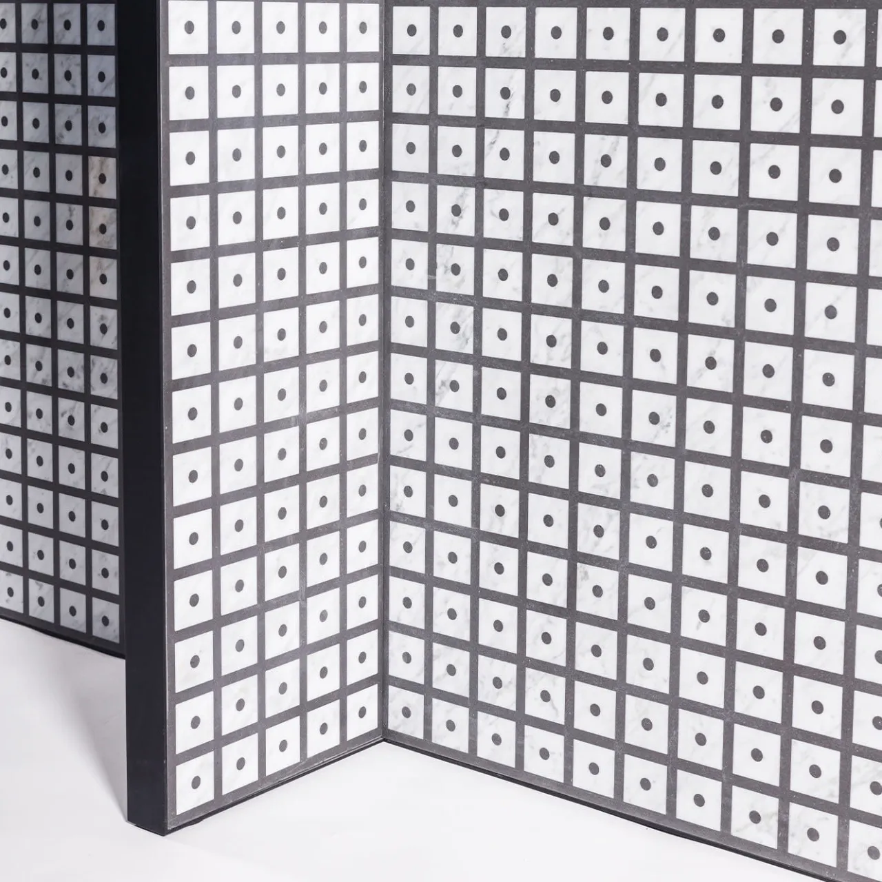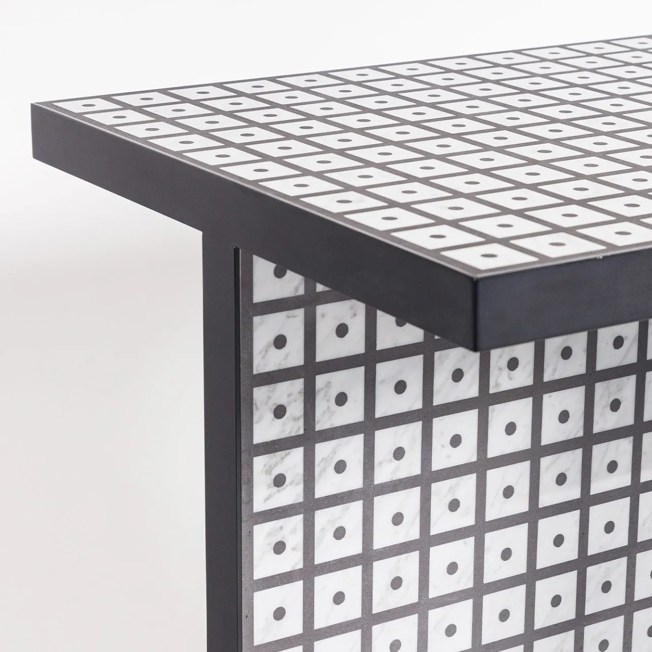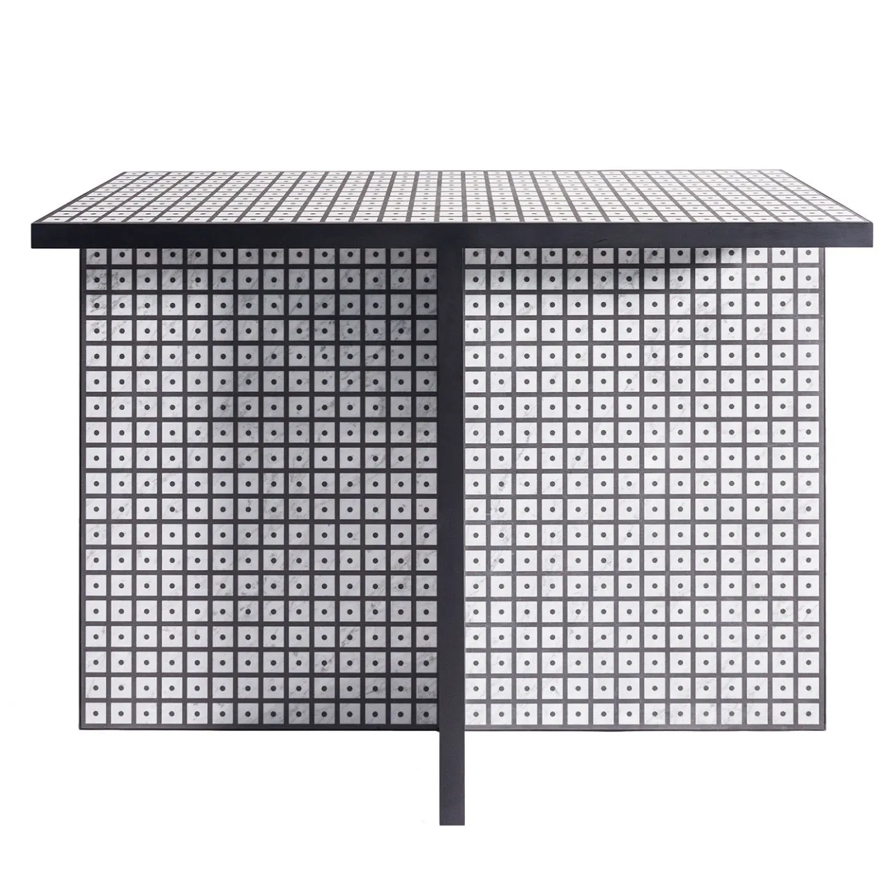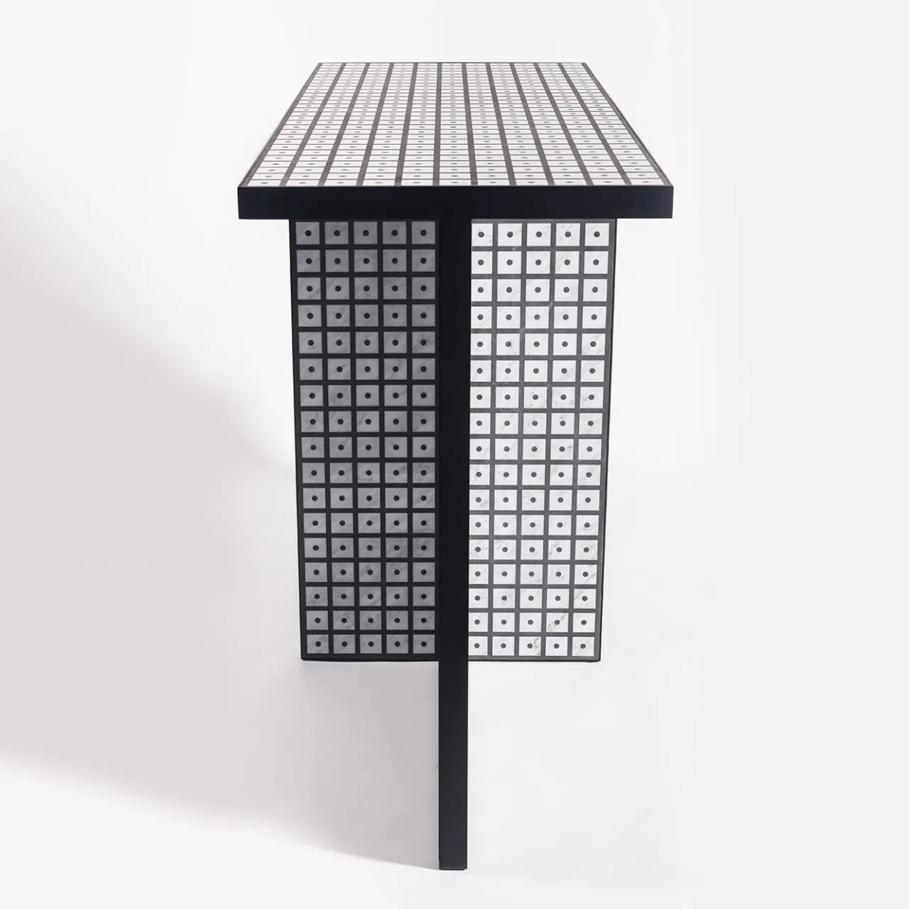 Disegnata da David e Nicolas Studio, questa accattivante consolle è un esercizio di rigore geometrico ottenuto combinando sapientemente sette pannelli in marmo e resina di cemento con una struttura metallica tagliata a T. Ogni lato è arricchito da una finitura lucida e colpisce con i suoi ipnotizzanti motivi geometrici. Sarà un’aggiunta azzeccata agli ingressi di stile contemporaneo.