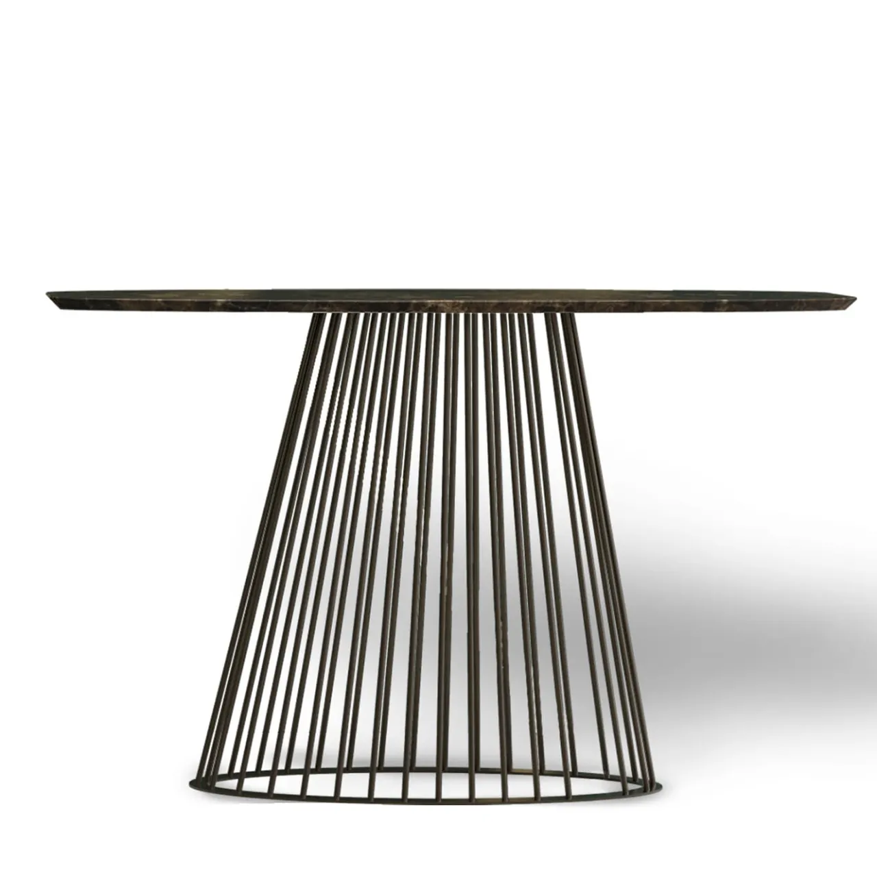 Torres è un tavolo consolle dal design leggero. Le basi sono composte da una struttura metallica radiale in bronzo, mentre il piano del tavolo è in Dark Emperador. Torres è disponibile anche come tavolo da pranzo o come set di tavoli; per l’intera collezione, consultare il catalogo Artemest.
