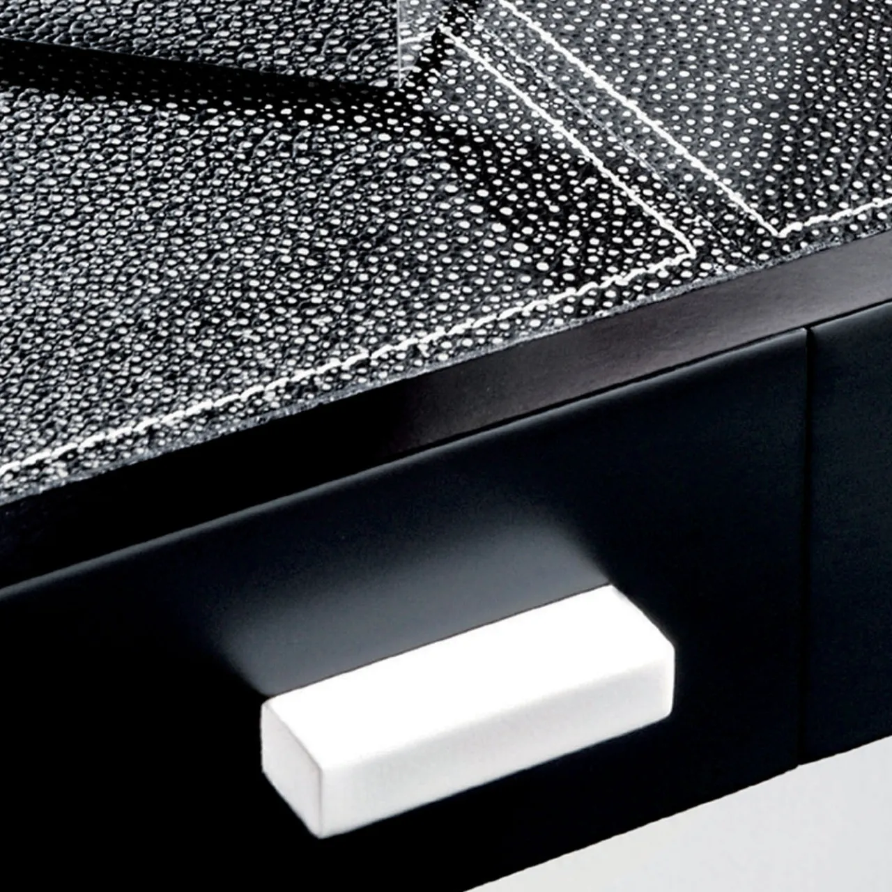 Splendida controparte della scrivania Victor, questa superba consolle può essere collocata all’ingresso per dare il benvenuto a ogni ospite in un ambiente elegante, oppure come ulteriore spazio espositivo o di lavoro accanto a un divano in salotto o nello studio. La struttura, sofisticata e senza tempo, è interamente realizzata in solido ebano Macassar. Il piano è impreziosito da uno zigrino nella stessa elegante tonalità degli accenti metallici color avorio che decorano la punta dei piedi e le maniglie dei cassetti.