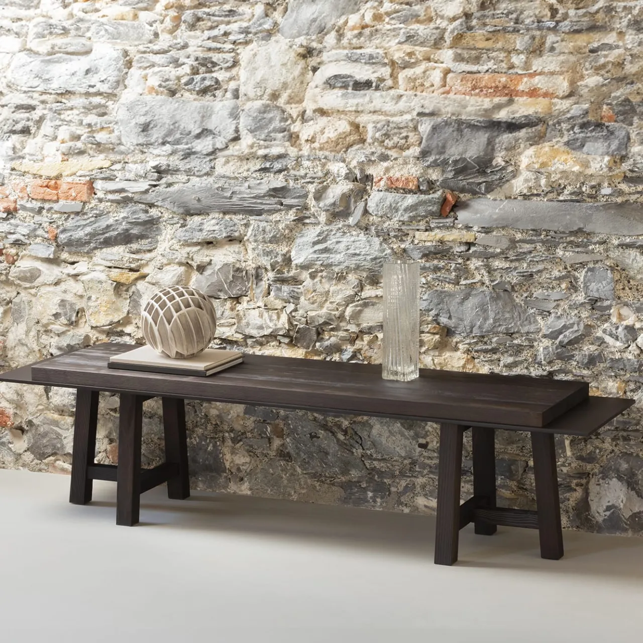 Sublime e meticolosa dimostrazione di maestria artigianale, questa consolle bassa incarna il minimalismo e la purezza delle forme. Intramontabile nel suo design organico, è composta da singolari elementi geometrici che emanano un’eleganza pulita e una raffinatezza essenziale, incastonati nell’elegante combinazione di bronzo brunito spazzolato e legno di pino nero sabbiato. Per maggiori dettagli, consultare il Concierge.