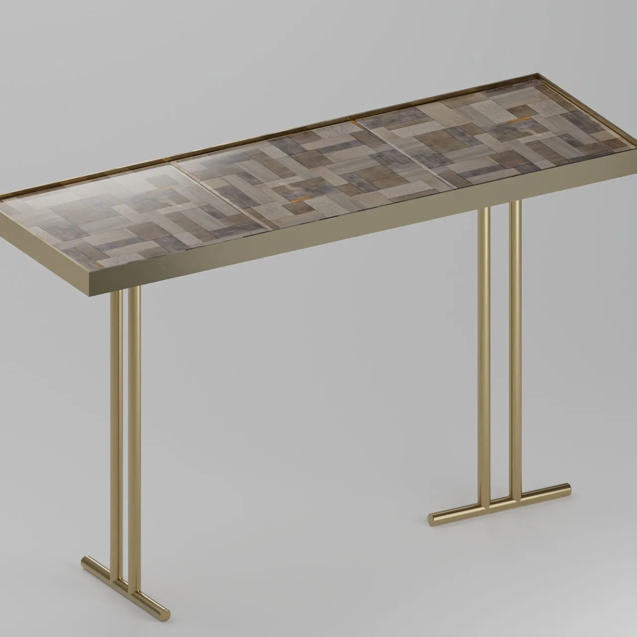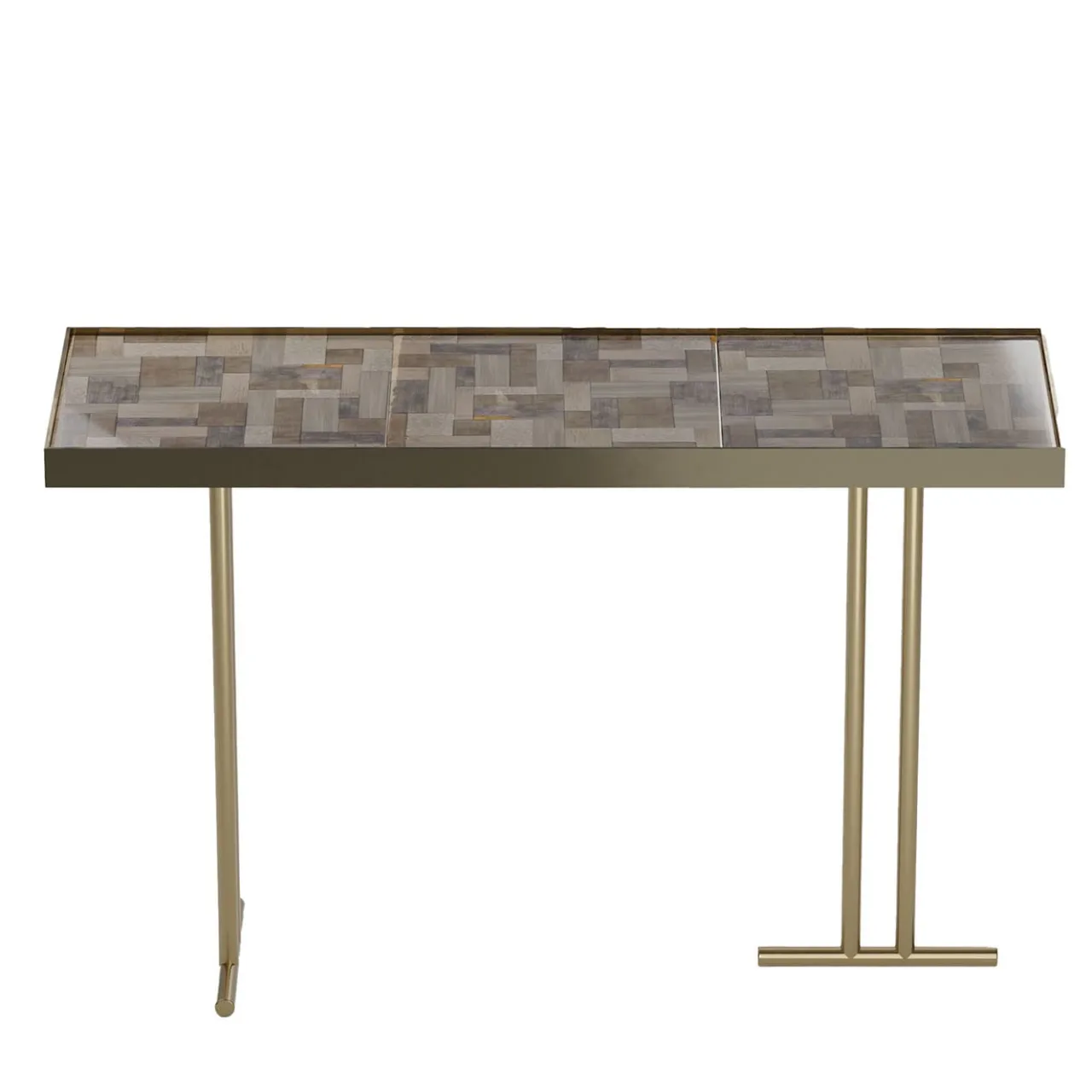 Parte della collezione Camilla, questa consolle combina un’artigianalità senza tempo con un’arte moderna. La sua superficie in ceramica bicottura dipinta a mano presenta un sottile effetto “carta da parati” ispirato alla bellezza eterea della nebbia. La struttura in acciaio, rifinita in lussuoso oro inglese, è abbinata a gambe asimmetriche, che aggiungono un tocco audace e contemporaneo. Perfetto per corridoi o zone living, emana eleganza e trasforma qualsiasi spazio con la sua estetica unica.