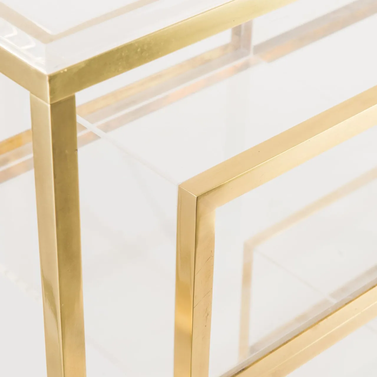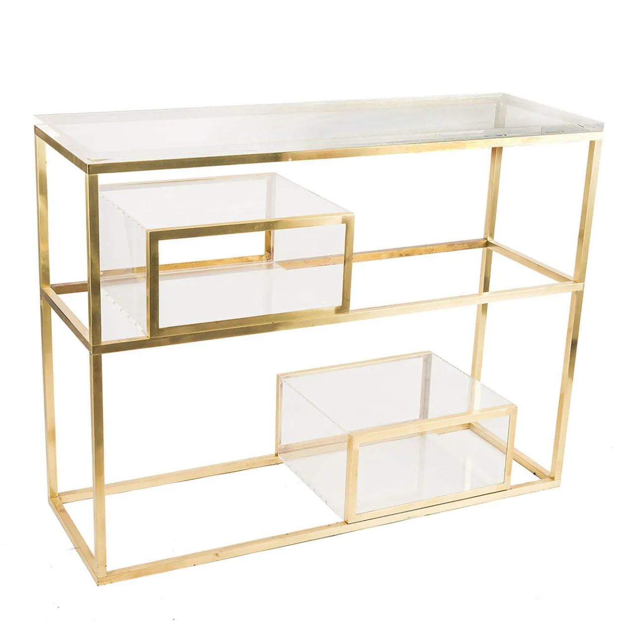 Vi presentiamo la consolle Library, uno straordinario connubio di design moderno e funzionalità. Il piano in plexiglass trasparente crea una sensazione di leggerezza e ariosità, mentre l’interno con cornice in ottone aggiunge un tocco di eleganza. Gli elementi scorrevoli e regolabili consentono la personalizzazione in base alle diverse esigenze estetiche. Realizzato con una struttura in ottone protetta, questo pezzo può essere montato contro una parete o posizionato in modo decentrato, offrendo versatilità per qualsiasi spazio.