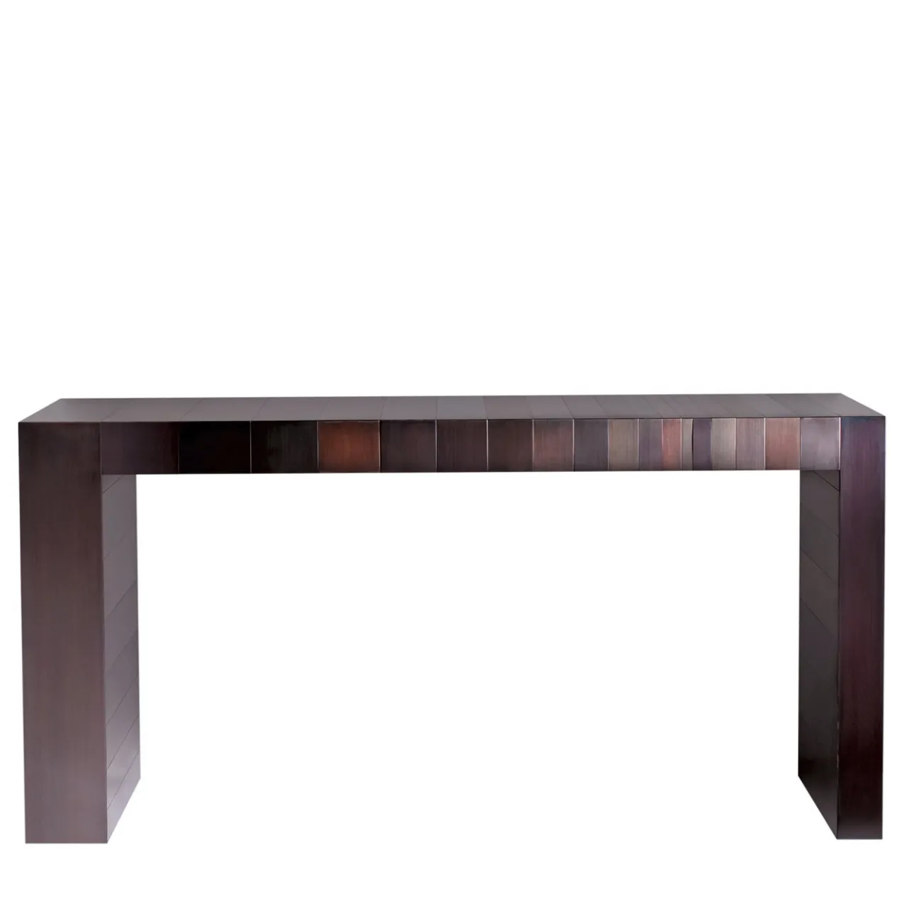 Strisce di rame brunito abilmente giustapposte, di diverse dimensioni e tonalità di colore, avvolgono questa consolle minimalista, ispirata ai vivaci motivi della Pop Art. Parte della Collezione Stars, la sua silhouette è minuziosamente rifinita con passaggi manuali che garantiscono l’unicità di ogni pezzo. Sono disponibili diverse opzioni di finitura; per maggiori dettagli, contattare il Concierge.