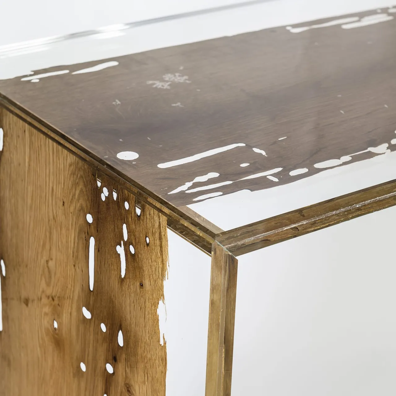 Incorporando una sottilissima lastra di rovere recuperata dalle “briccole” dismesse, utilizzate per segnare i canali navigabili nella laguna di Venezia, questa consolle porterà un pezzo autentico di Venezia nelle case contemporanee. La struttura essenziale in vetro trasparente, con la sua trasparenza, allude anche all’acqua che circonda la città.