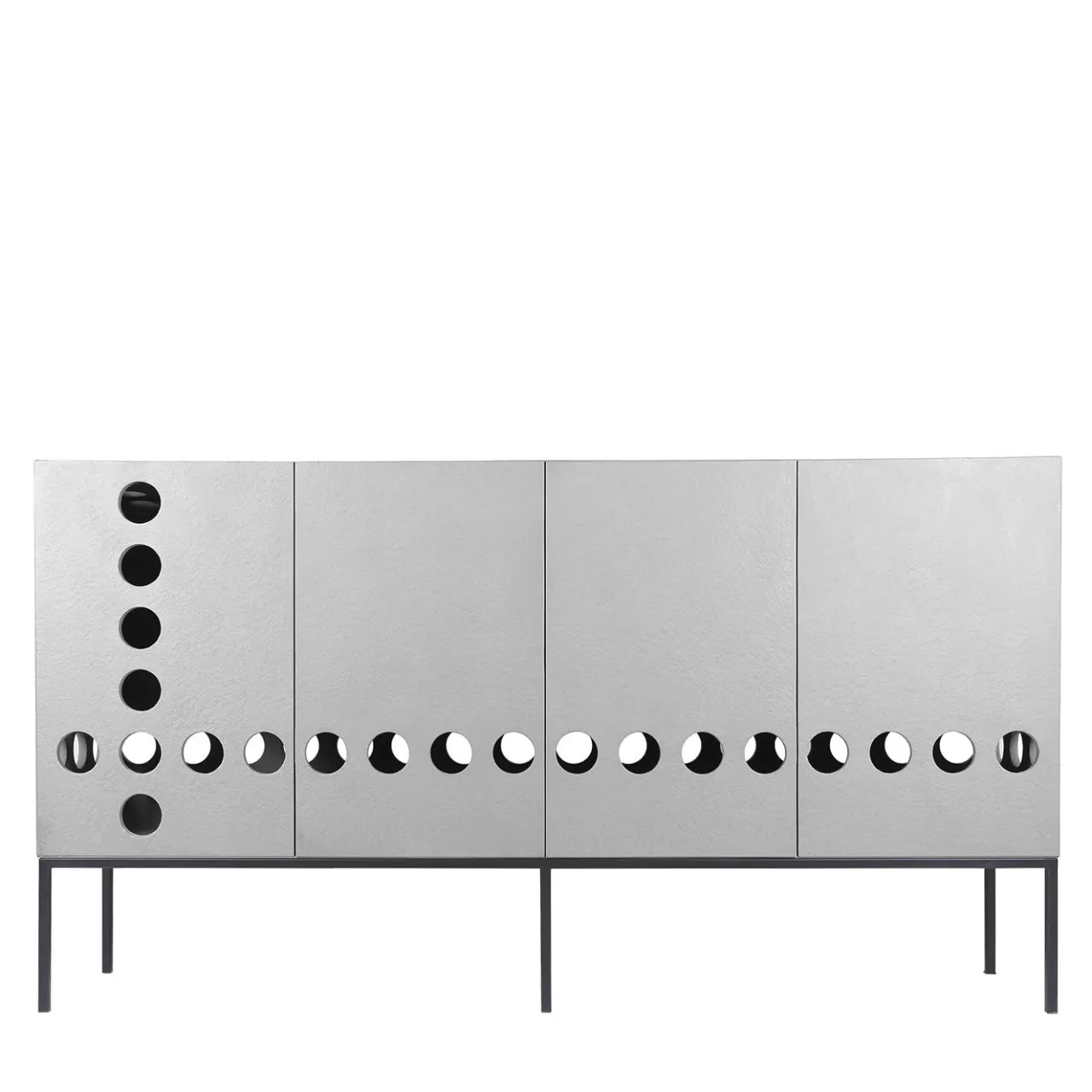 Realizzata in Valchromat, un materiale innovativo e flessibile che combina le caratteristiche naturali ed eleganti del legno con le tonalità più brillanti, questa credenza presenta un design unico e contemporaneo firmato Stefano Mazzucchetti. Poggiata su una base in metallo laccato nero, presenta quattro ante e un ripiano interno. Altri colori sono disponibili su richiesta, si prega di contattare il Concierge per i dettagli.