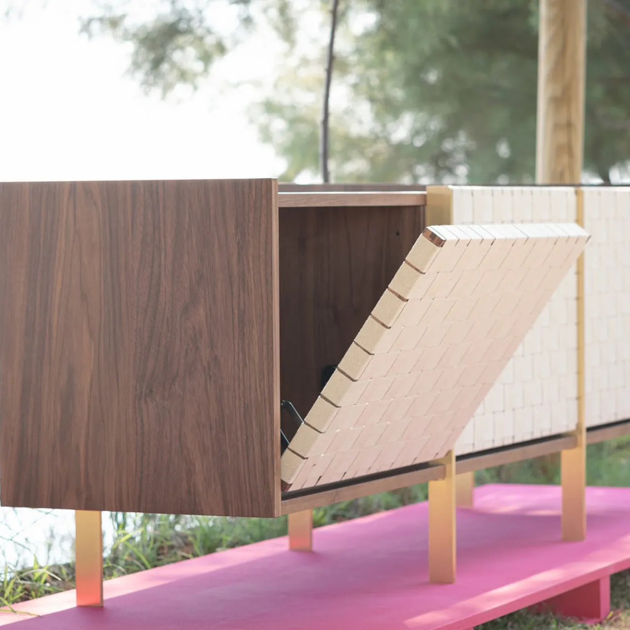 Un design elegante e senza tempo, caratterizzato da un’estetica semplice e raffinata, la credenza Milla è magistralmente realizzata a mano secondo le tecniche tradizionali. Contraddistinta da un nastro rigido in gros grain ecru utilizzato per creare un decoro frontale intrecciato, è realizzata in legno di noce canaletto, arricchito da dettagli in metallo.