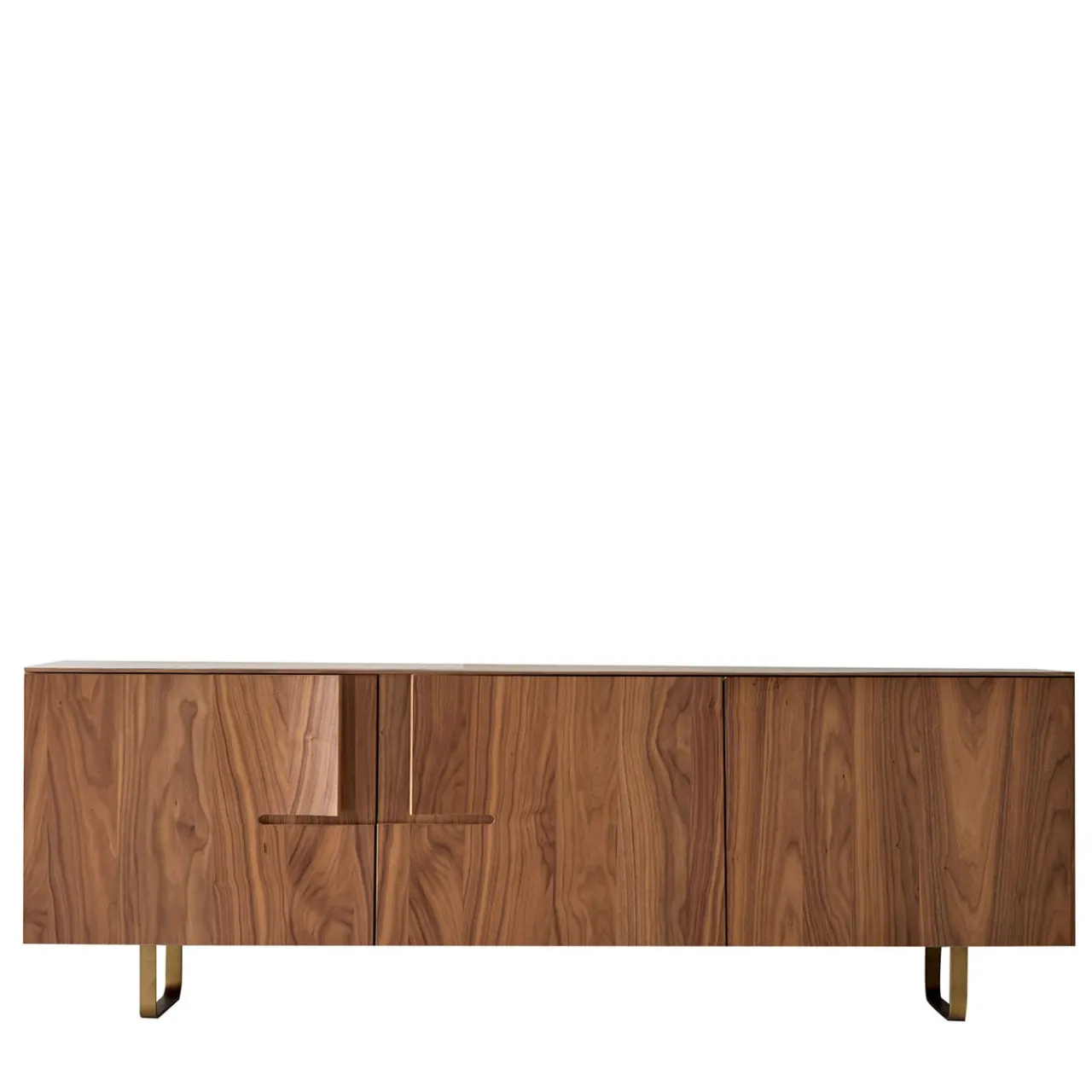 La credenza Book, con 3 ante in legno e 2 ripiani interni in vetro, è interamente realizzata in legno di noce canaletto sia per la parte posteriore che per quella interna. Le gambe sono in ferro verniciato bronzo. Le 2 ante con la tipica maniglia sporgente in legno si aprono tramite la maniglia, mentre l’anta si apre con il sistema push-pull. La vernice è un prodotto naturale a base d’acqua.