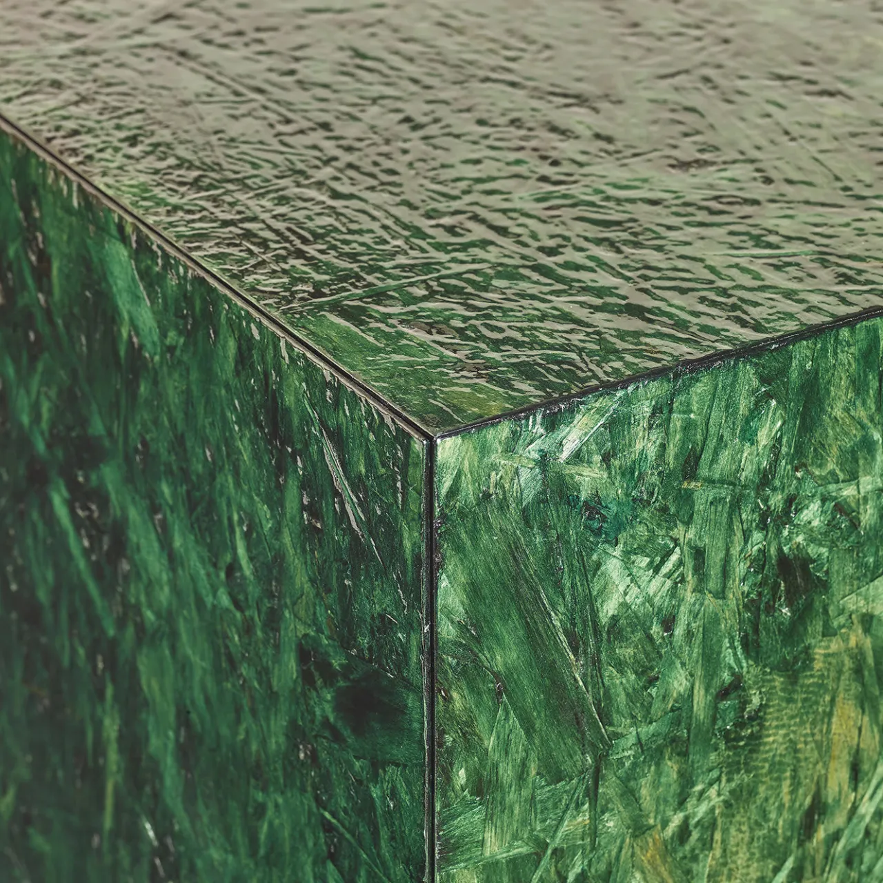 Questa credenza a 4 ante battenti dal design unico, di colore verde, aggiungerà un tocco di eleganza contemporanea alla vostra casa. La scocca è realizzata interamente in OSB lucido, mentre i ripiani interni e la base sono in metallo laccato nero, con sezione 25×25 mm. Le ante sono dotate di apertura con maniglia a scomparsa. Dimensioni: 160x40x80H cm.