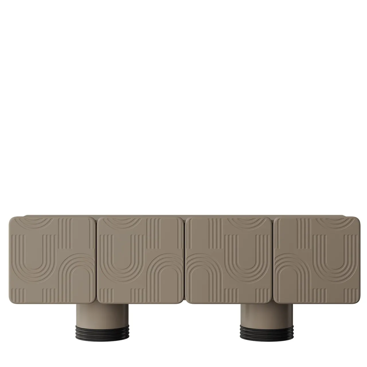 Questa elegante credenza è caratterizzata da quattro ante incise con cerniere a chiusura ammortizzata e da due eleganti gambe rotonde presentate in finitura laccata grigio opaco con piedini extra laccati nero opaco. Il suo design comprende frontali e angoli splendidamente arrotondati, che aggiungono un tocco di raffinatezza arricchito anche dal cassetto interno e dai ripiani.