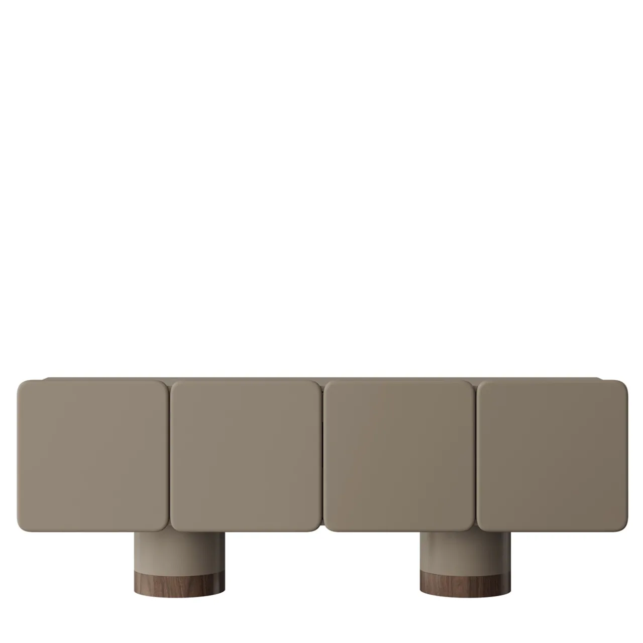 Questa elegante credenza è caratterizzata da quattro ante arrotondate con cerniere a chiusura ammortizzata e due eleganti gambe rotonde presentate in finitura laccata opaca e Noce Canaletto. Il suo design comprende frontali e angoli splendidamente arrotondati, che aggiungono un tocco di raffinatezza arricchito anche dal cassetto interno e dai ripiani in Noce Canaletto. La finitura laccata grigio opaco conferisce un aspetto liscio e moderno.