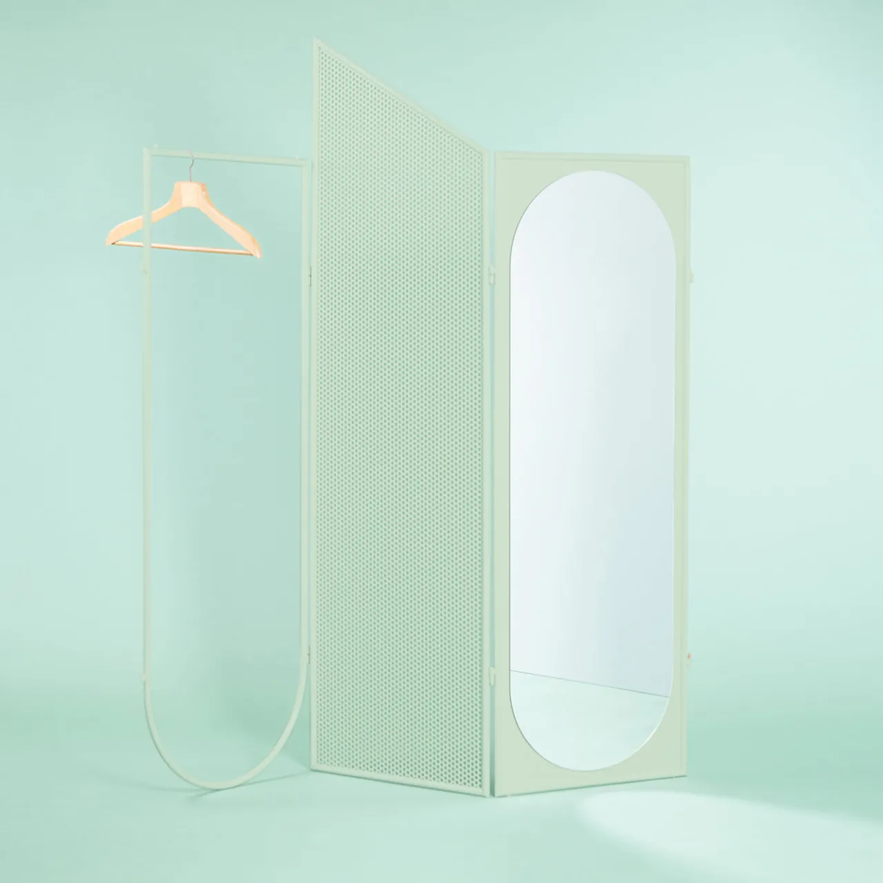 Infinitamente modulare, il separè Déjà-vu è l’accessorio perfetto per qualsiasi angolo di spazio pubblico o domestico. Le linee rigorose e geometriche dei suoi moduli (appendiabiti, specchio, divisorio multiforme e corpo illuminante) combinano il significato di retrò intrinseco a questo oggetto con un’estetica contemporanea.