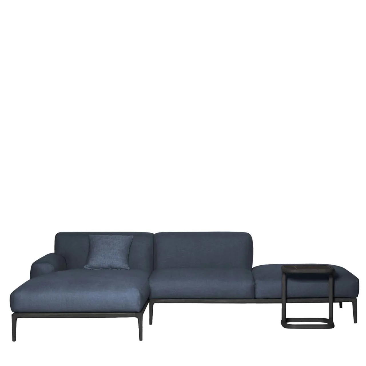 Bellagio è una nuova collezione caratterizzata da linee ben definite, sapientemente lavorate, che mira a soddisfare i gusti più sofisticati, presentandosi con oggetti raffinati e preziosamente rifiniti in ogni dettaglio. Il divano ha una struttura in legno di frassino con cuscini di schienale e seduta imbottiti e rivestiti in tessuto blu. Mescolando materiali raffinati e rigorosamente naturali con una struttura in legno massello finemente lavorata, Bellagio offre un arredamento completo dalla zona giorno alla zona notte.