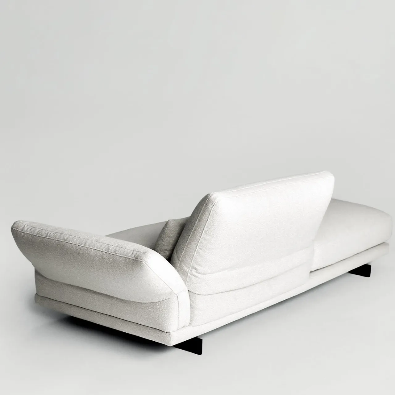 I braccioli regolabili a piacere per adattarsi al proprio umore e alle proprie esigenze sono l’elemento distintivo del divano Beverly, qui proposto in una versione luminosa e compatta con il modulo terminale. Sollevata da piedini metallici minimalisti, la struttura accoglie volumi pieni definiti da una ricca imbottitura interna e da un raffinato rivestimento in tessuto bianco (rif. M163/5) per un maggiore comfort di seduta. I cuscini decorativi sono inclusi.