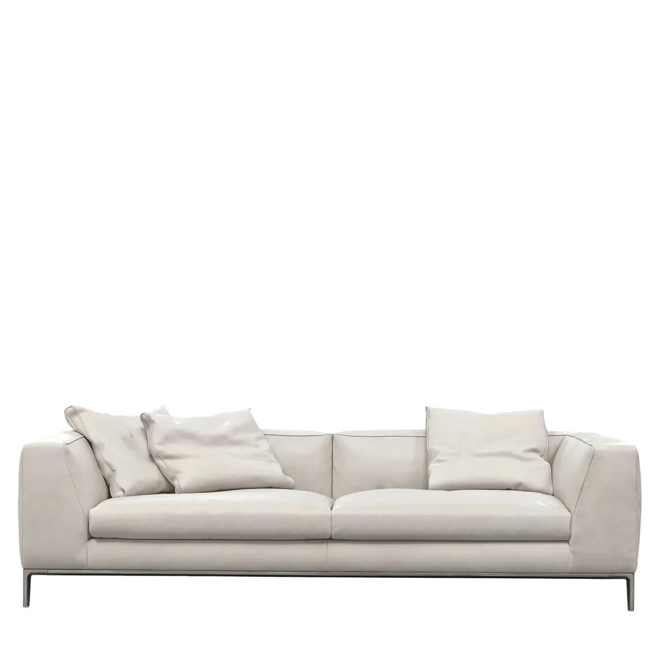Questo divano bianco disegnato da Giuseppe Bavuso, che emana una raffinatezza contemporanea, coniuga perfettamente stile e comfort. La sua struttura in legno, avvolta da poliuretano espanso e piuma d’oca, garantisce durata e morbidezza. L’elegante base e i piedi in alluminio, disponibili in una gamma di finiture lucide o laccate, aggiungono un tocco di modernità. Con i cuscini di seduta in poliuretano espanso ad alta densità e trapuntati con piume sterilizzate, questo divano offre un comfort ineguagliabile. Per le varianti, contattare il Concierge.