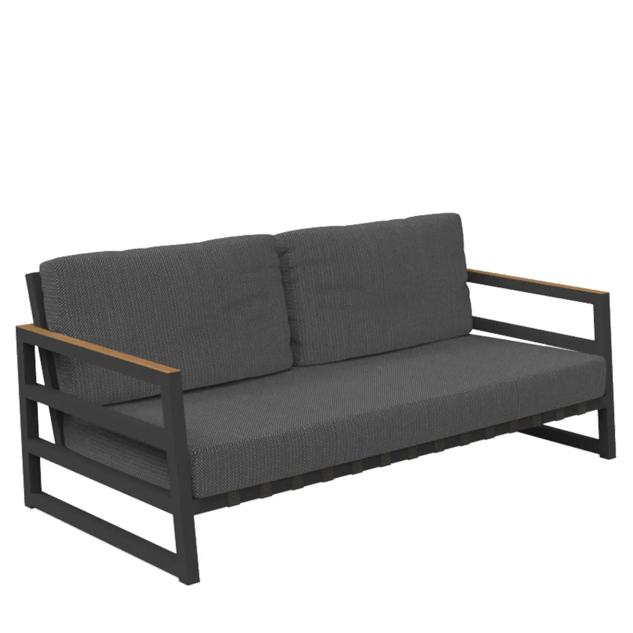 Questo elegante divano da esterno a 2 posti si distingue per la seduta confortevole e le dimensioni ridotte, che consentono un uso efficiente dello spazio. Il suo design è caldo e accogliente, grazie alla struttura in alluminio grafite e ai bellissimi braccioli in teak. Realizzato in Italia da esperti artigiani, questo articolo è un perfetto connubio tra forma e funzione. I suoi cuscini, resistenti alle intemperie, sono in tessuto sfoderabile e in schiuma ad asciugatura rapida. Su richiesta, sono disponibili certificazioni per il settore contract e commerciale.