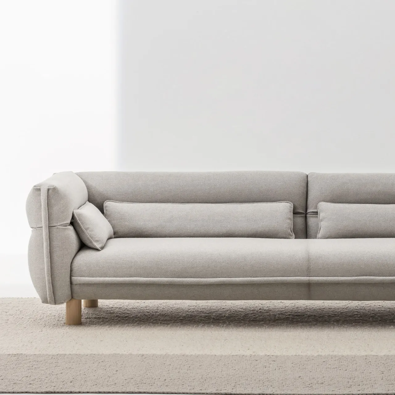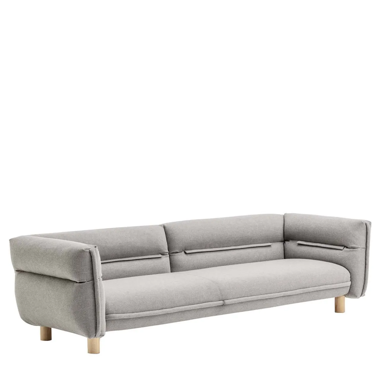 Combinando comfort e silhouette elegante, questo divano è un’aggiunta superba a un interno moderno. I dettagli sartoriali esaltano l’eleganza di questo pezzo, con un caratteristico bordino e accenti orizzontali che nascondono la cerniera per i cuscini lombari disponibili, che offrono un sostegno supplementare. La struttura in frassino massiccio e acciaio poggia su piedi in frassino naturale. Il rivestimento in tessuto grigio copre l’imbottitura in fibra di poliestere. Questo pezzo è disponibile anche in misure più piccole che misurano: 180×105 cm, 220×105 cm e 250×105.