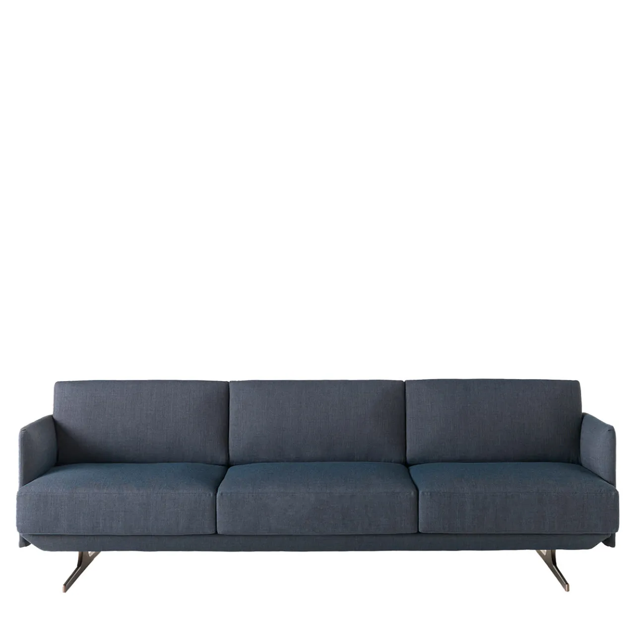Questo divano imbottito a 3 posti è caratterizzato da piedi in alluminio verniciato in metallo cacao, per garantire eleganza e funzionalità in ogni salotto.