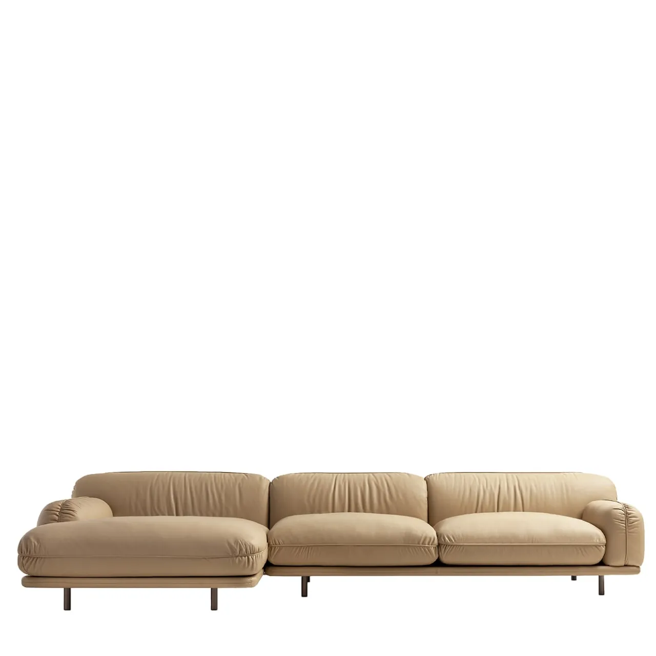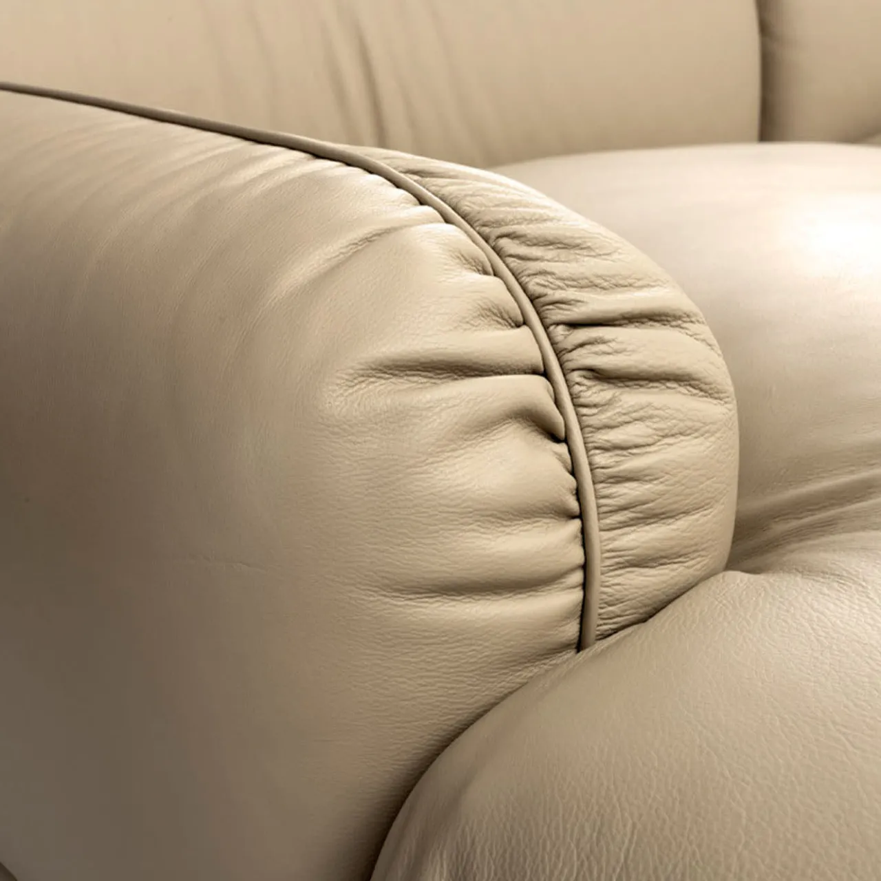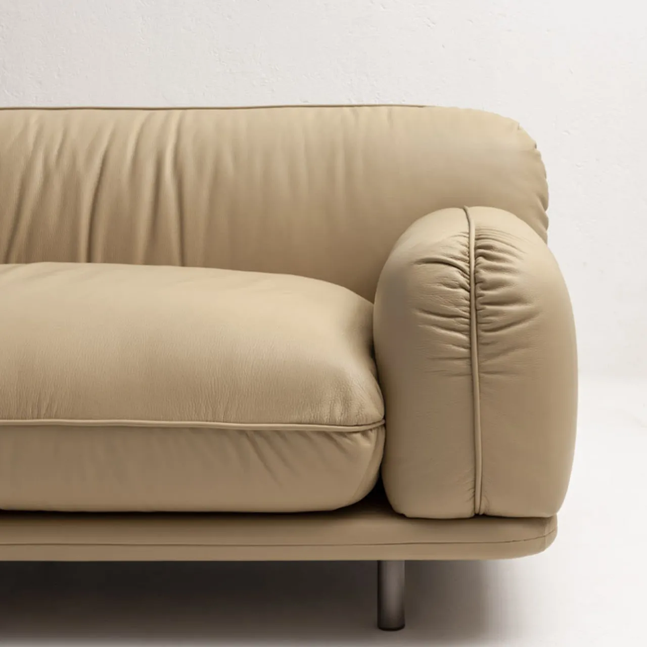 Super Mc è un elegante divano in pelle beige che combina perfettamente lusso e comfort. I suoi ampi cuscini in tessuto felpato fungono sia da schienale che da seduta, offrendo una sensazione di leggerezza e ariosità. La struttura in legno, sostenuta da eleganti gambe cilindriche in metallo, conferisce un tocco di raffinatezza ed equilibrio al design. Con un mix ideale di morbidezza e sostegno, Super Mc offre un’esperienza di seduta simile a una nuvola, rendendola l’aggiunta perfetta per il relax e lo stile in qualsiasi spazio.
