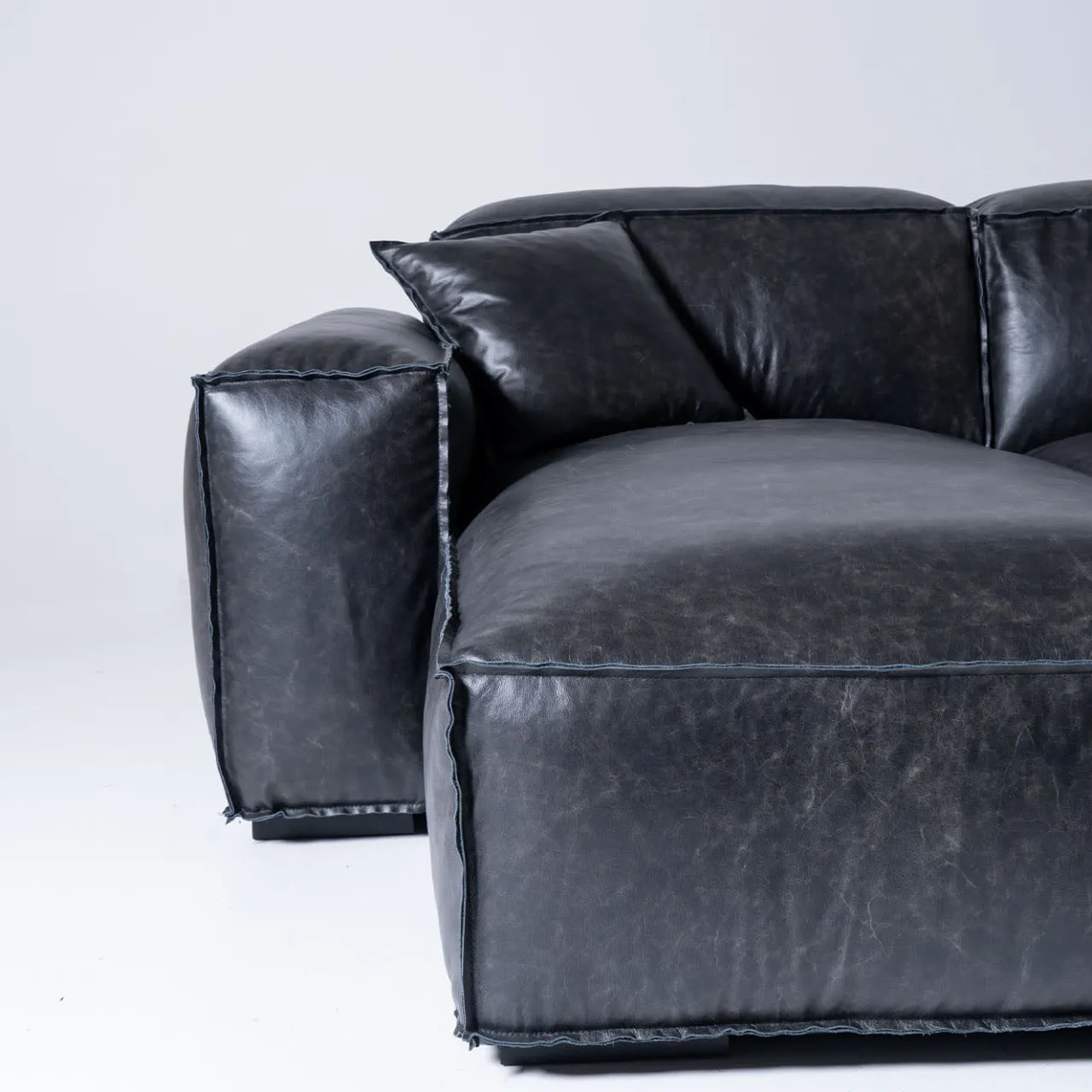 Espressione audace del design contemporaneo, questo divano modulare è caratterizzato da un rivestimento in pelle color antracite con cuciture a taglio vivo che ne sottolineano l’artigianalità. La chaise longue e la seduta Free Side creano una disposizione fluida e dinamica, mentre i braccioli imbottiti e la seduta centrale regolabile offrono il massimo comfort. La struttura in legno massiccio e ferro assicura una lunga durata, unendo eleganza e funzionalità. I cuscini non sono inclusi. Contattare il Concierge per ulteriori dettagli.