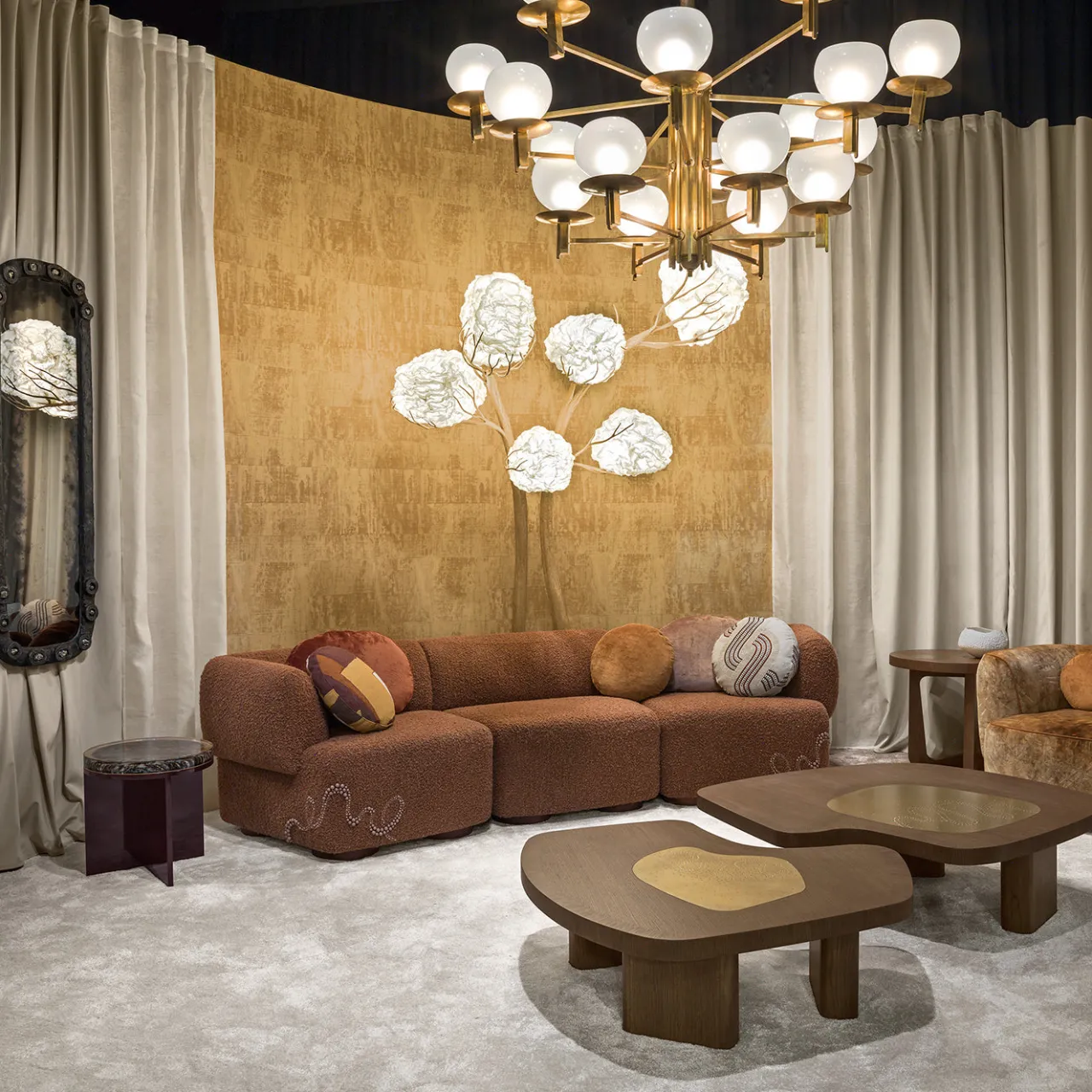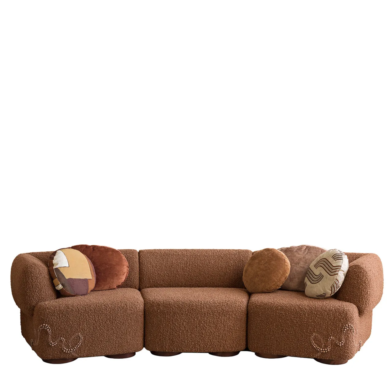 Questo divano modulare a tre posti, rivestito in tessuto bouclé testurizzato, presenta dettagli decorativi in perle agli angoli dei due moduli esterni. Progettato per la flessibilità, questo divano consente diverse configurazioni di assemblaggio per adattarsi a varie disposizioni e dimensioni di seduta. La forma arrotondata e imbottita offre un’esperienza di seduta accogliente e invitante, mentre i delicati dettagli in perle aggiungono un tocco raffinato al design complessivo. I cuscini decorativi sono inclusi.