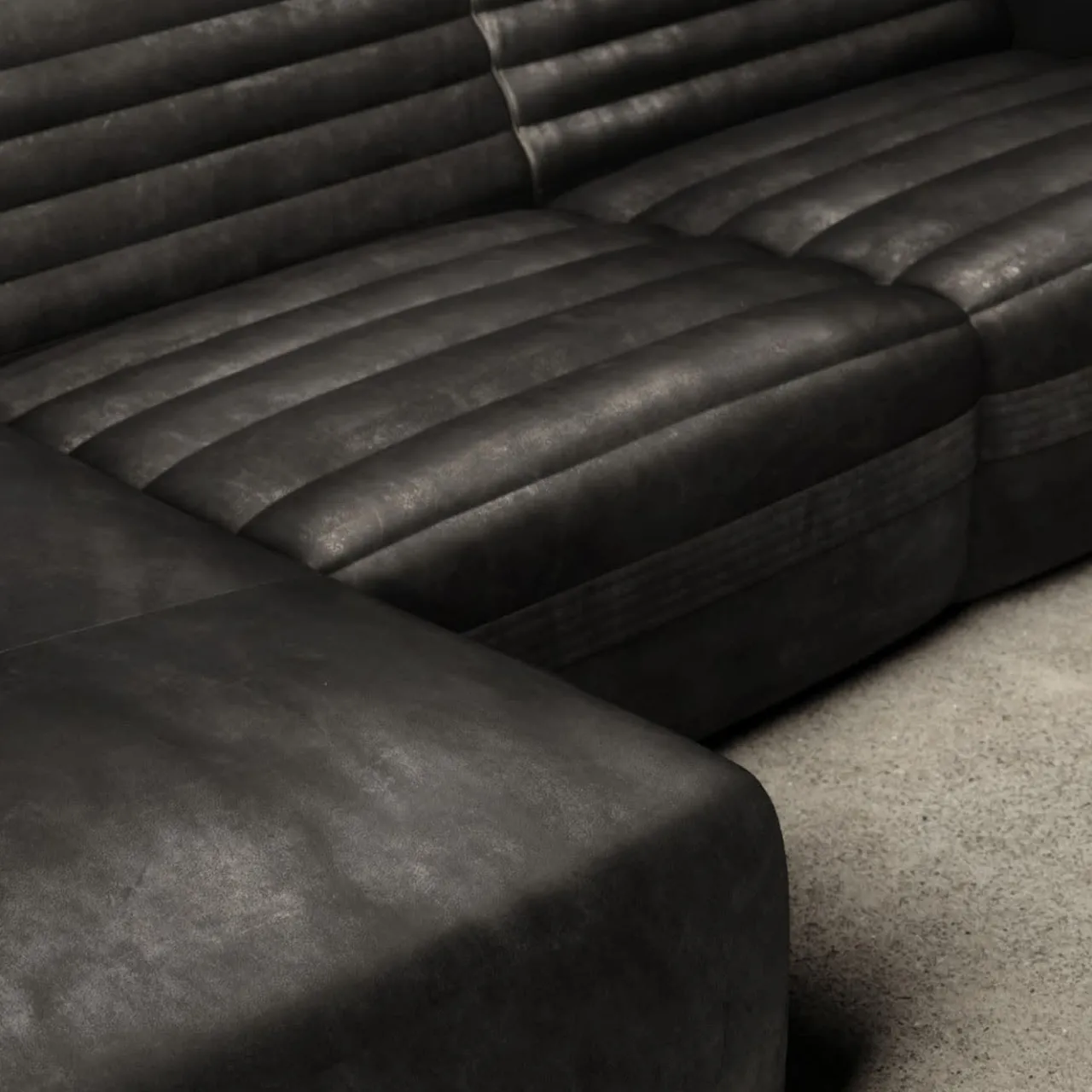 Vicious è un divano modulare composto da 4 elementi componibili: modulo terminale, modulo centrale, modulo angolare e chaise longue. Il divano Vicious, disponibile in tessuto o pelle, è composto da una struttura in legno rivestita in poliuretano espanso ad alta densità e da uno strato superiore in piuma d’oca per garantire morbidezza e comfort assoluti. Questa configurazione di Vicious è rivestita in pelle Timeless, conciata al cromo, essiccata sottovuoto, rifinita all’anilina e strofinata a mano per ottenere un effetto lavato e un tocco morbido.