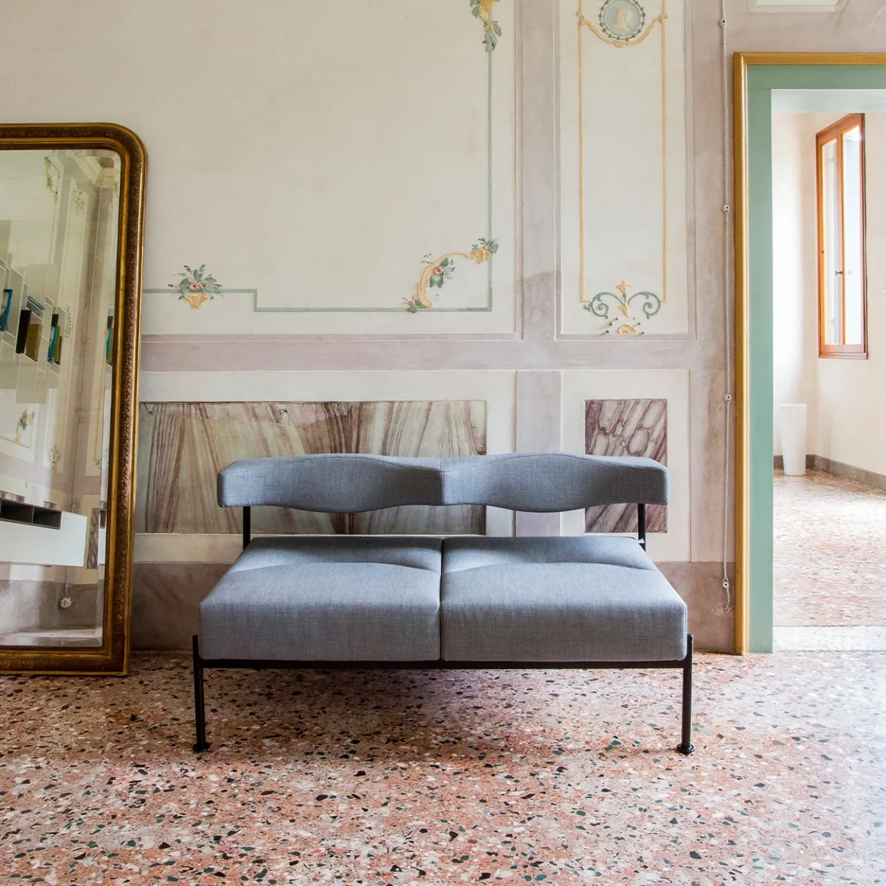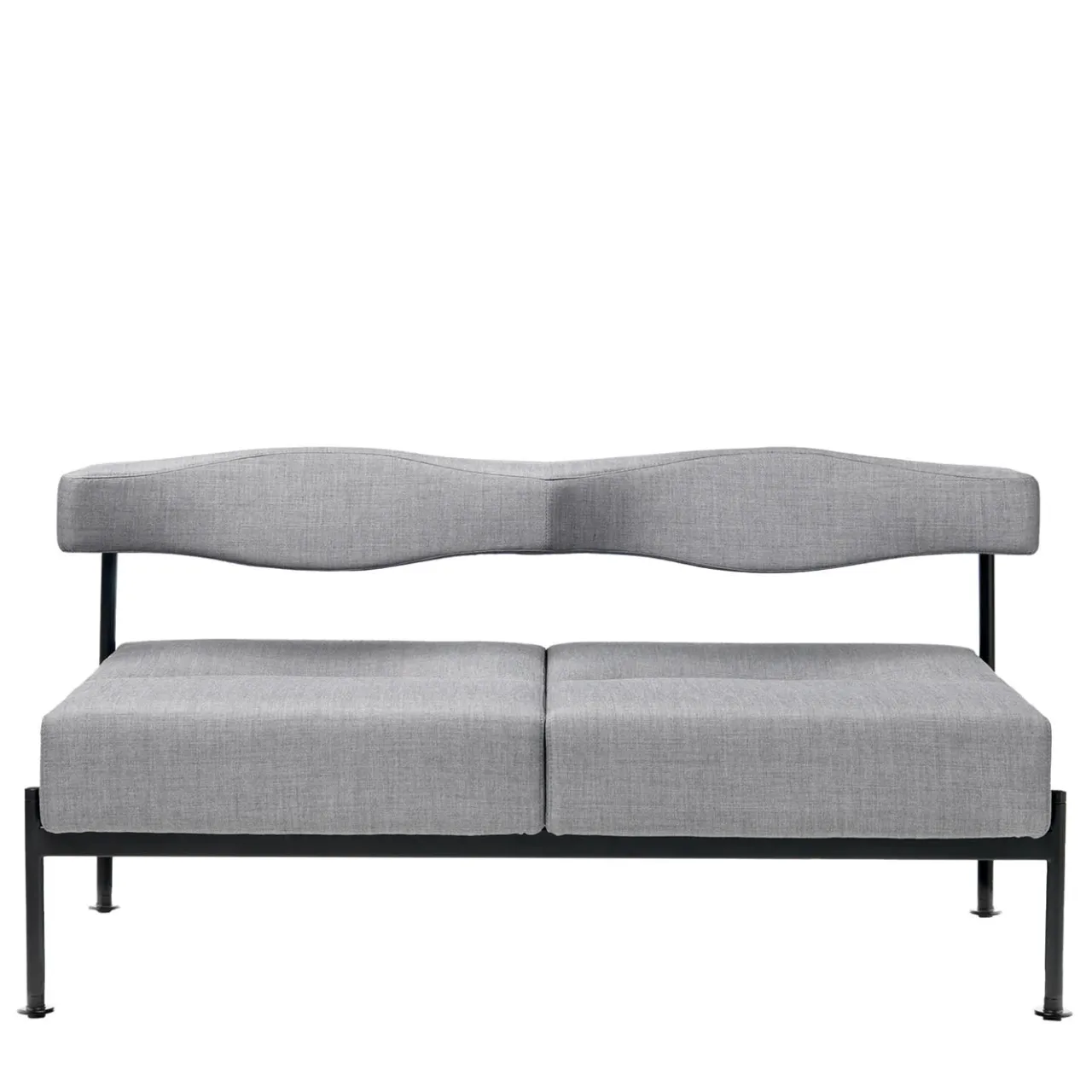 Questo elegante divano a due posti imbottito grigio è arricchito da una struttura a 4 gambe in acciaio verniciato nero opaco.