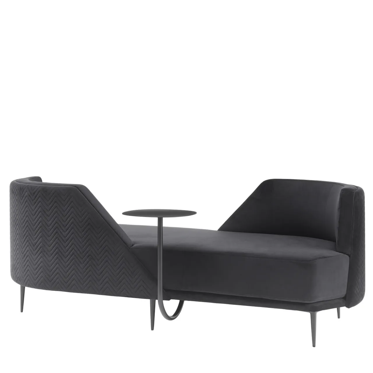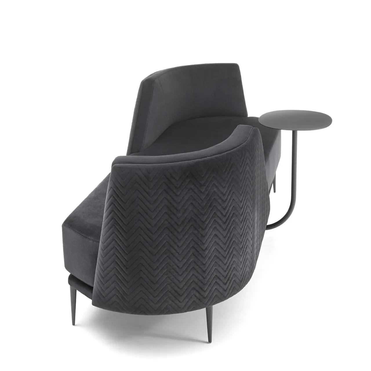 Questo divano imbottito vis-à-vis è caratterizzato da piedi in alluminio verniciato in nero opaco. Eleganza e funzionalità per ogni salotto.