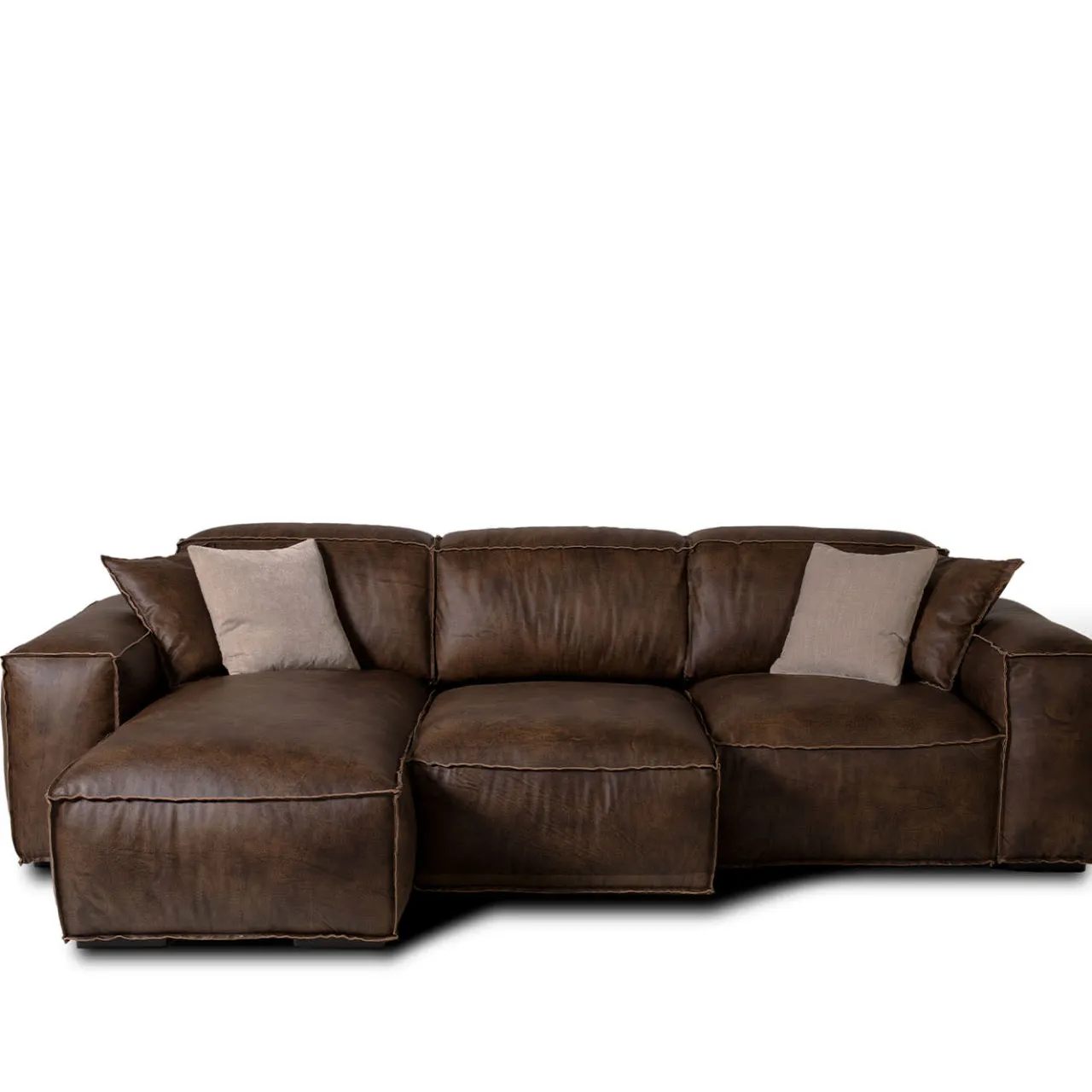 Progettato per un relax di lusso, questo divano a tre posti con chaise longue offre una seduta generosa con sedili scorrevoli estensibili per una maggiore profondità. Rivestito in ricca pelle marrone con cuciture a taglio vivo, unisce l’eleganza senza tempo alla versatilità moderna. L’imbottitura in schiuma ad alta densità e il piumino in piuma d’oca assicurano un comfort supremo, mentre la struttura in faggio massiccio garantisce una lunga durata. I cuscini non sono inclusi. Si prega di contattare il Concierge per conoscere le dimensioni.