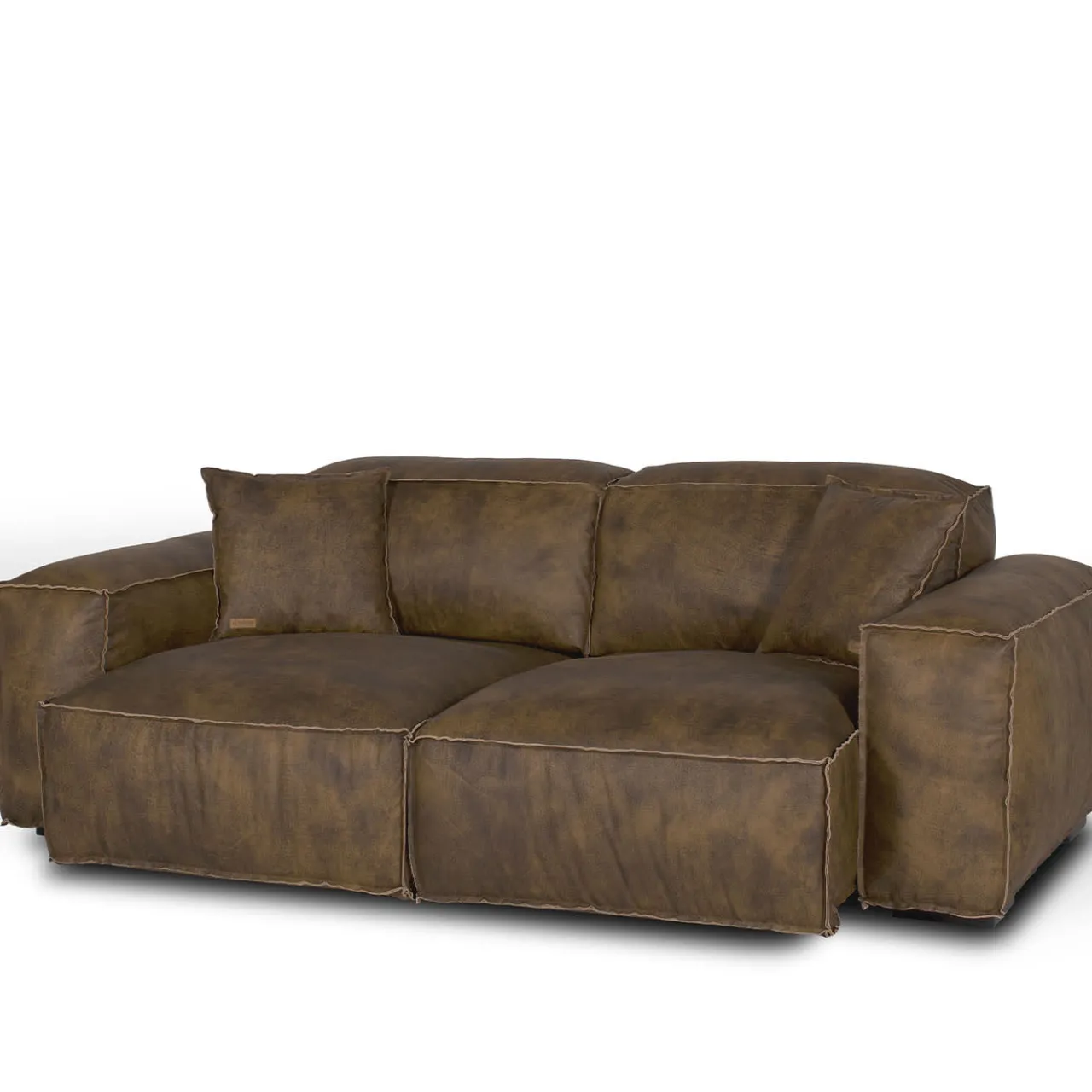 Capolavoro di lusso sobrio, questo divano emana un fascino vintage con la sua ricca pelle marrone e le cuciture a taglio vivo meticolosamente realizzate. Le sue proporzioni generose e i braccioli sottilmente scolpiti invitano al relax, mentre la morbida imbottitura acquisisce carattere nel tempo. La base in legno di faggio massiccio è il punto di riferimento del design, che offre resistenza e raffinatezza. I cuscini non sono inclusi. Consultare il Concierge per scoprire le dimensioni disponibili.