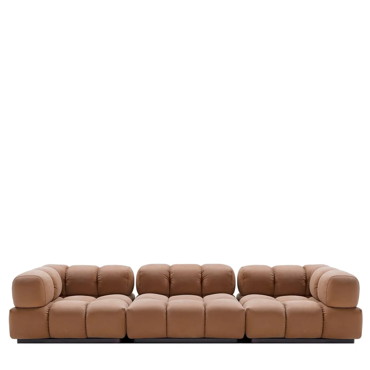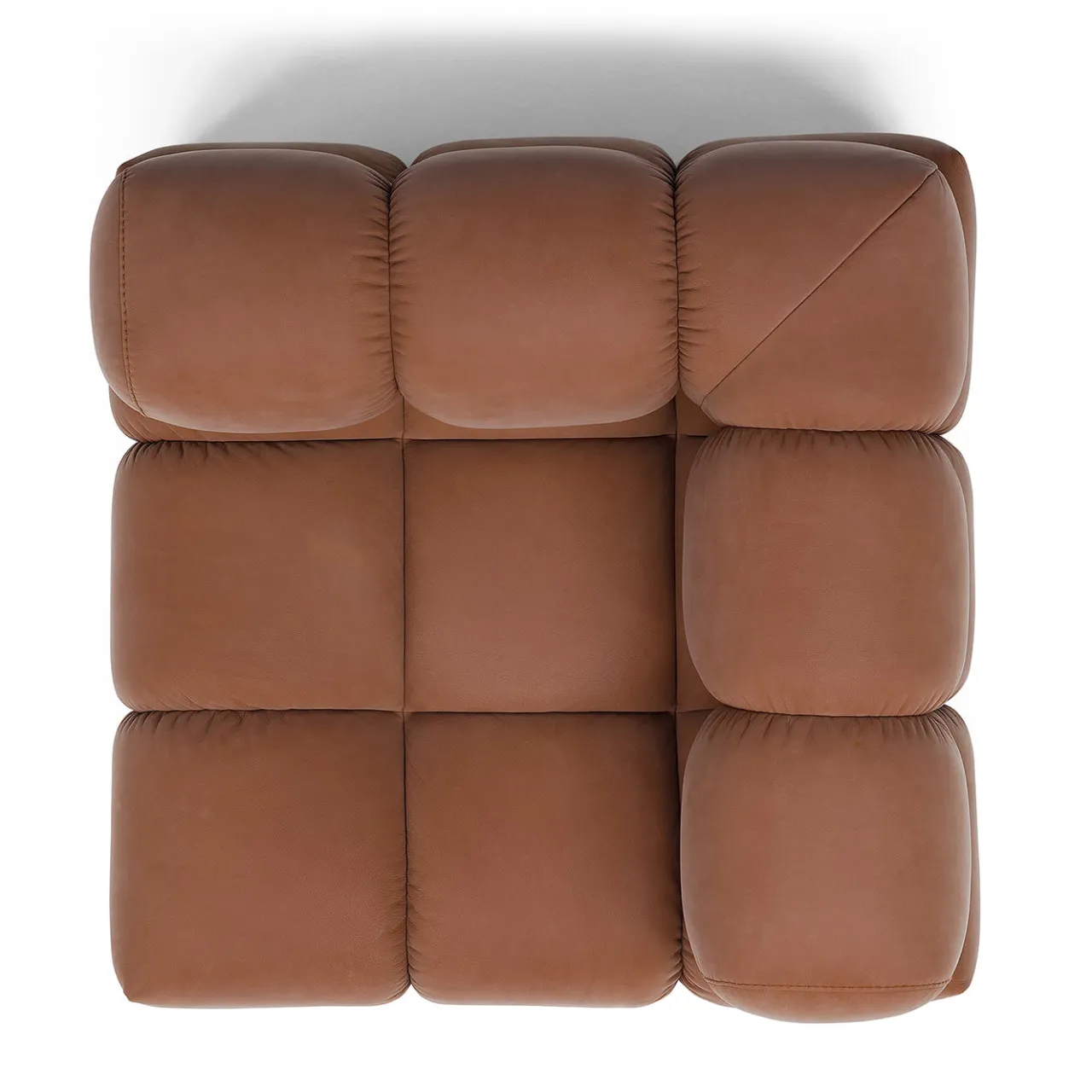 Un divano che sembra danzare a ritmo di pop, questo design modulare con base in legno e rivestimento in pelle marrone, che eleva l’aspetto di qualsiasi casa moderna con il suo audace design trapuntato che disegna volumi cubici pieni. La ricca imbottitura interna in memory foam gli conferisce la caratteristica morbidezza, che può essere apprezzata sia con gli occhi che con il tatto. Consultare il Concierge per le opzioni di personalizzazione disponibili.
