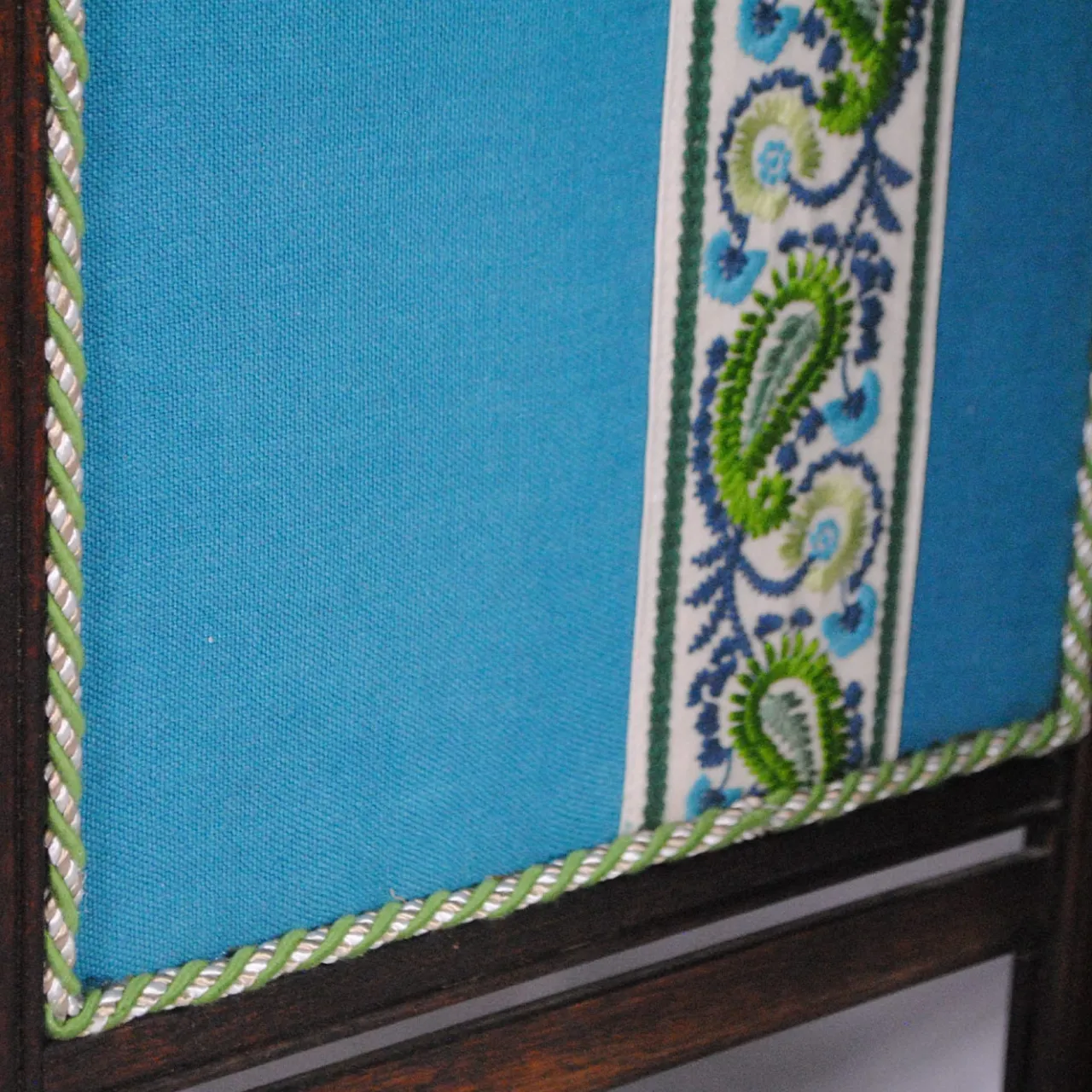 Ricco di fascino sartoriale, questo divisorio è un gioiello d’arredo magistralmente restaurato che sfoggia la sua struttura originale in legno provenzale. La coesistenza di un lato a tinta unita e di uno ornato da passamanerie e fasce ricamate in stile inglese rivela lo spirito fresco del design, che lo rende ideale per passare da interni classici a monolocali eclettici. Le cerniere originali sono state restaurate e mantenute.