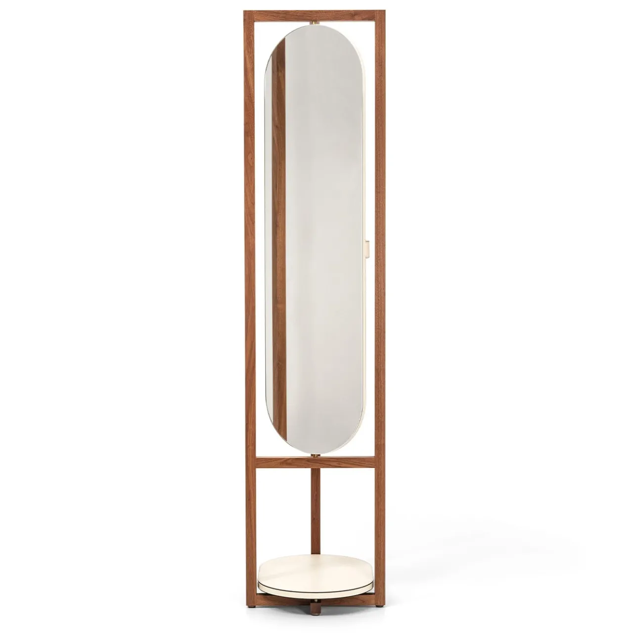 Elena, il nuovo portavalori pensato appositamente per lei. Dopo lo stile Achille, siamo lieti di arricchire la nostra collezione con una versione più femminile. L’elegante struttura in legno di noce è ora più alta e impreziosita da uno specchio girevole rifinito sul retro da un rivestimento in pelle e da un vassoio portagioie per riporre i piccoli gioielli. Perfetto per gli abiti da sera eleganti, il fondo è completato da una base in pelle che dà risalto ai tacchi. Preparatevi per il vostro prossimo gala in modo unico.