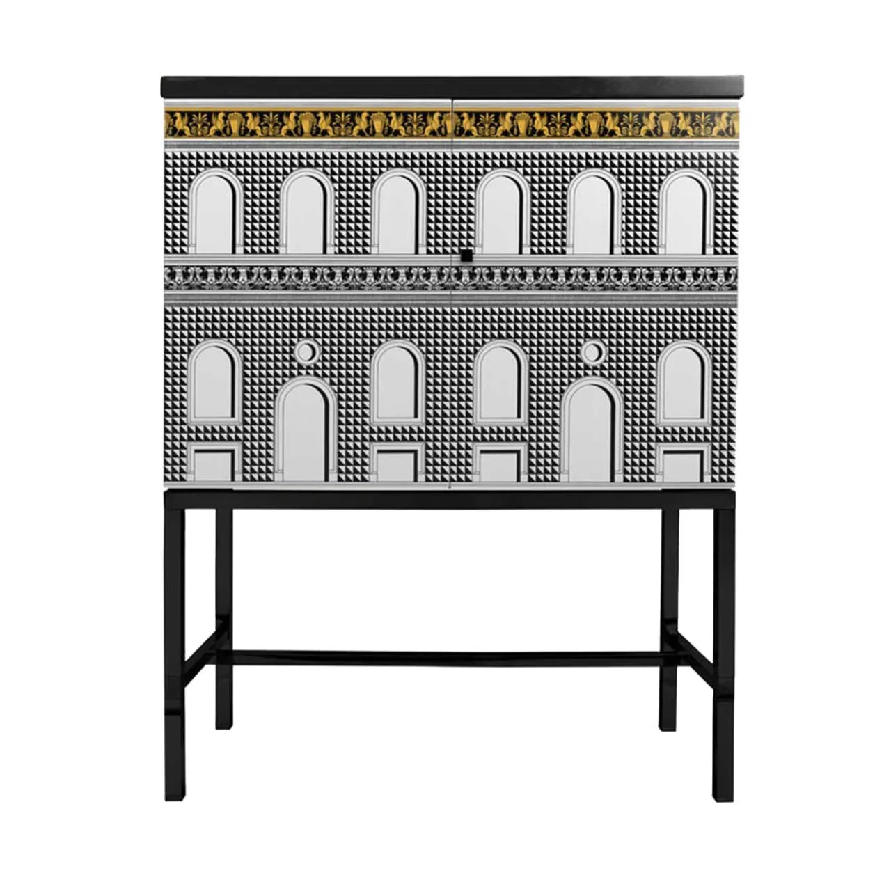 Il mobile Fornasetti è un mobile contenitore in legno serigrafato e laccato a mano secondo il metodo tradizionale dell’Atelier. Il motivo evoca il Rinascimento italiano secondo quel viaggio metaforico nel tempo intrapreso da Fornasetti con la collezione Contemporary Antiquity per la Milano Design Week 2021. Ogni mobile in legno di Fornasetti è serigrafato e laccato a mano e ogni piccola discrepanza tra creazioni simili è il risultato della lavorazione artigianale.