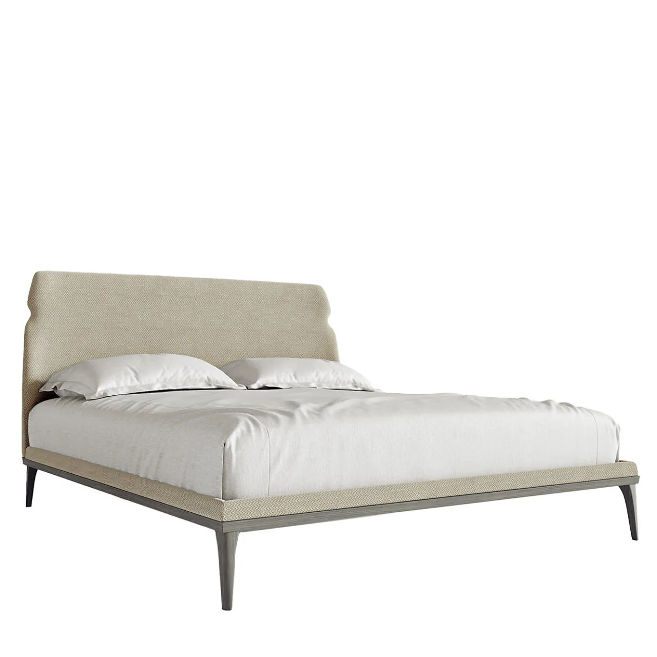 Letto con testata imbottita, leggermente curvata e impreziosita dal dettaglio stilistico della forma. Piedi in legno massiccio in tinta noce canaletto, disponibile anche in tinta tay scuro. Disponibile anche nella versione King Size. Rivestimento disponibile in tessuto, pelle e Nabuk. È inclusa solo la struttura del letto.