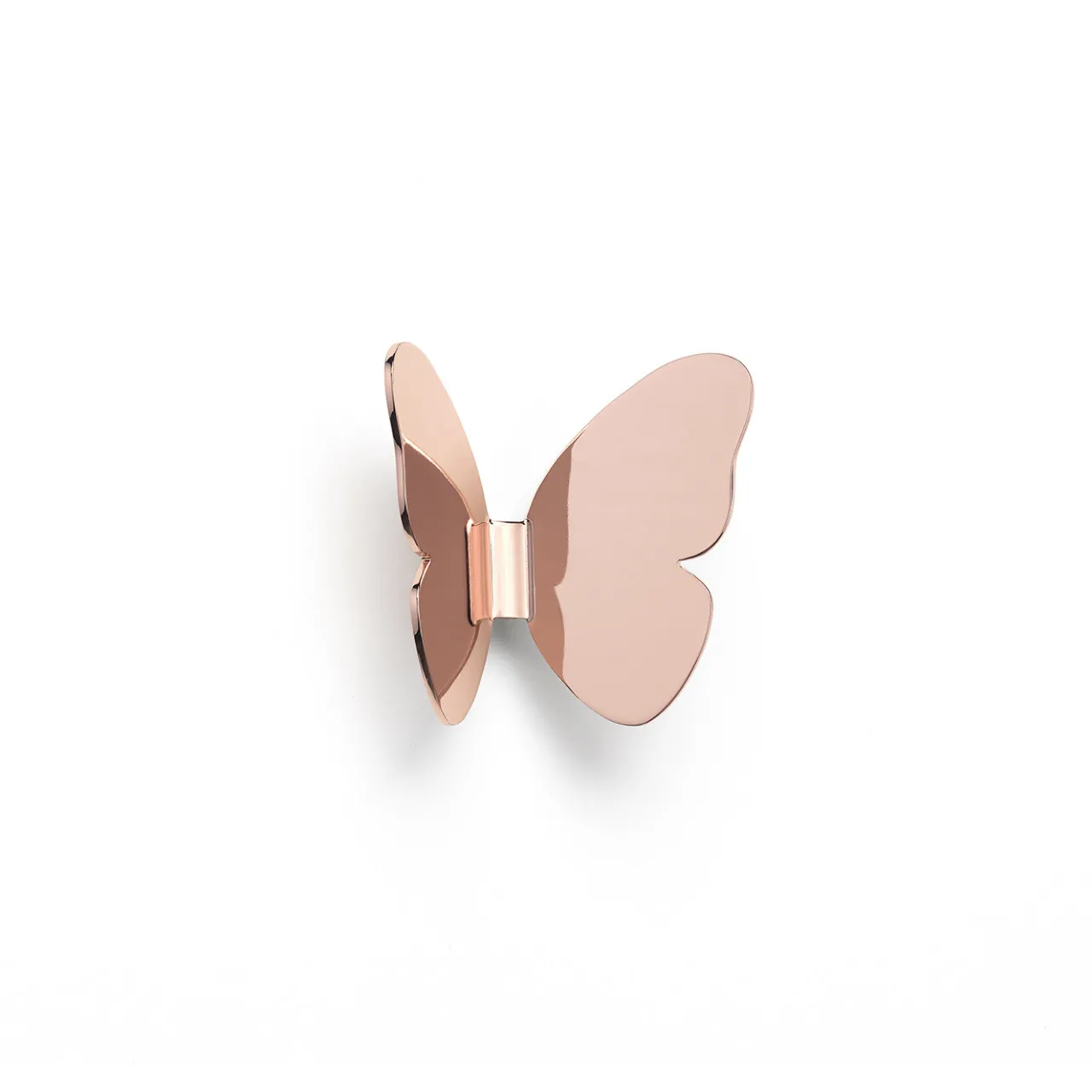 una elegante gruccia singola progettata a forma di farfalla, realizzata in ottone lucido con una sottile tonalità rosa. questo accessorio decorativo aggiunge un tocco di eleganza e sofisticatezza a qualsiasi ingresso o appendiabiti, fondendo perfettamente funzionalità e forma artistica. la sua finitura liscia e i bordi curvi garantiscono che i capi pendano in sicurezza senza scivolare o danneggiarsi. ideale per valorizzare sia gli interni moderni che quelli classici.