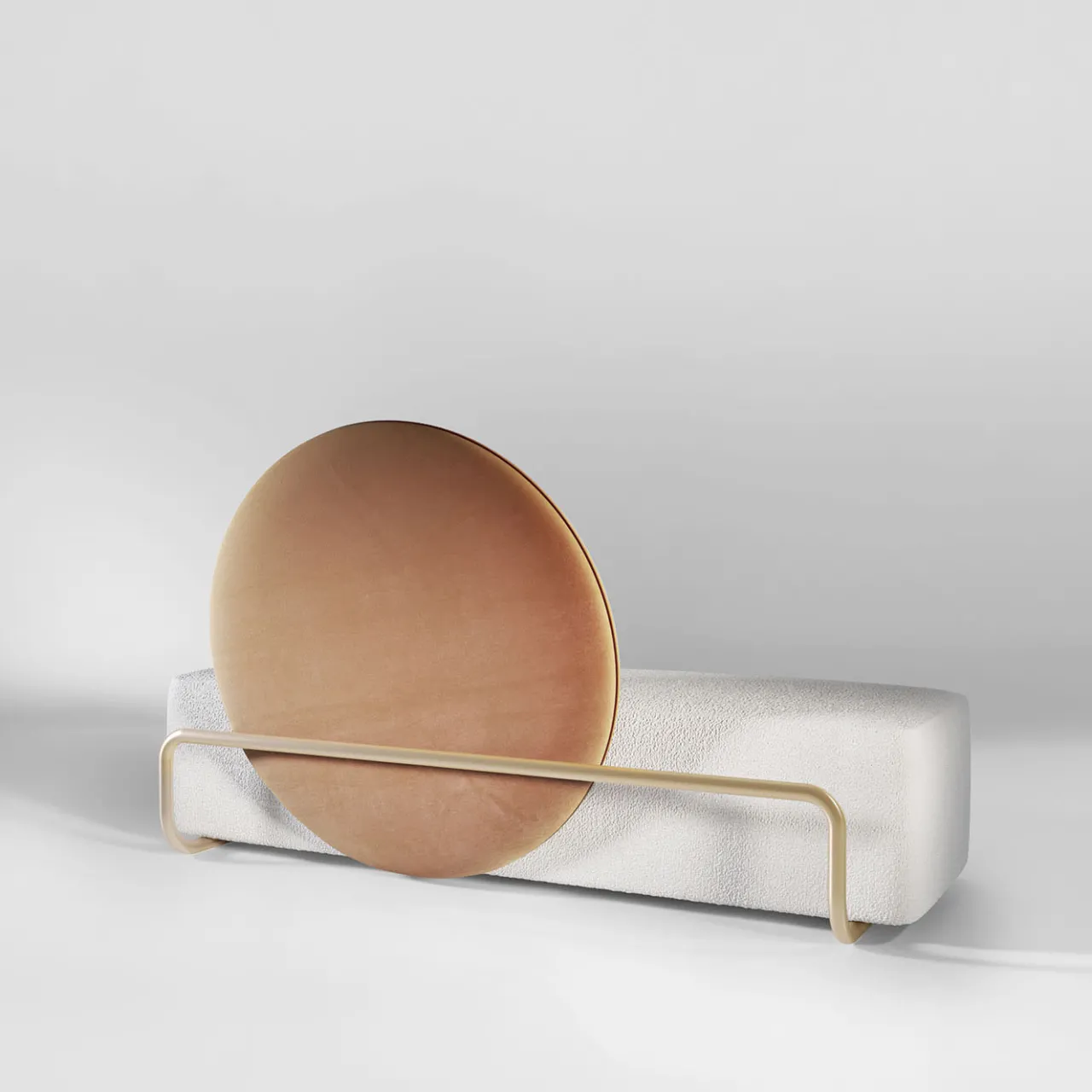 Horizon Sofa, progettato da Artefatto Design Studio, è un divano innovativo con uno schienale circolare mobile, che si appoggia su una solida struttura in ottone satinato, permettendo di ruotarlo a piacere. Il sedile presenta un rivestimento in Standard Cocò Desert Storm, mentre lo schienale è in Standard Velvet Cognac, offrendo la possibilità di cambiare aspetto con due tessuti diversi. Disponibile in altre finiture e con tessuti personalizzabili, conferisce eleganza e versatilità a qualsiasi ambiente.