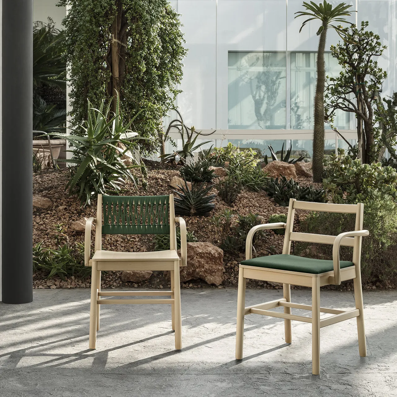 Combinazione armoniosa di design tradizionale e fascino contemporaneo, questa poltrona infonde una delicata raffinatezza a qualsiasi arredamento moderno. Realizzata in legno di faggio, la sua silhouette è caratterizzata da linee morbide e semplici composte da gambe corte e sottili, uno schienale aperto, braccioli dalle curve sinuose e un’ampia seduta rivestita in tessuto verde. Questa poltrona è disponibile anche con intreccio in pelle o in corda che caratterizza lo schienale e con rivestimento in pelle, ecopelle e tessuto.