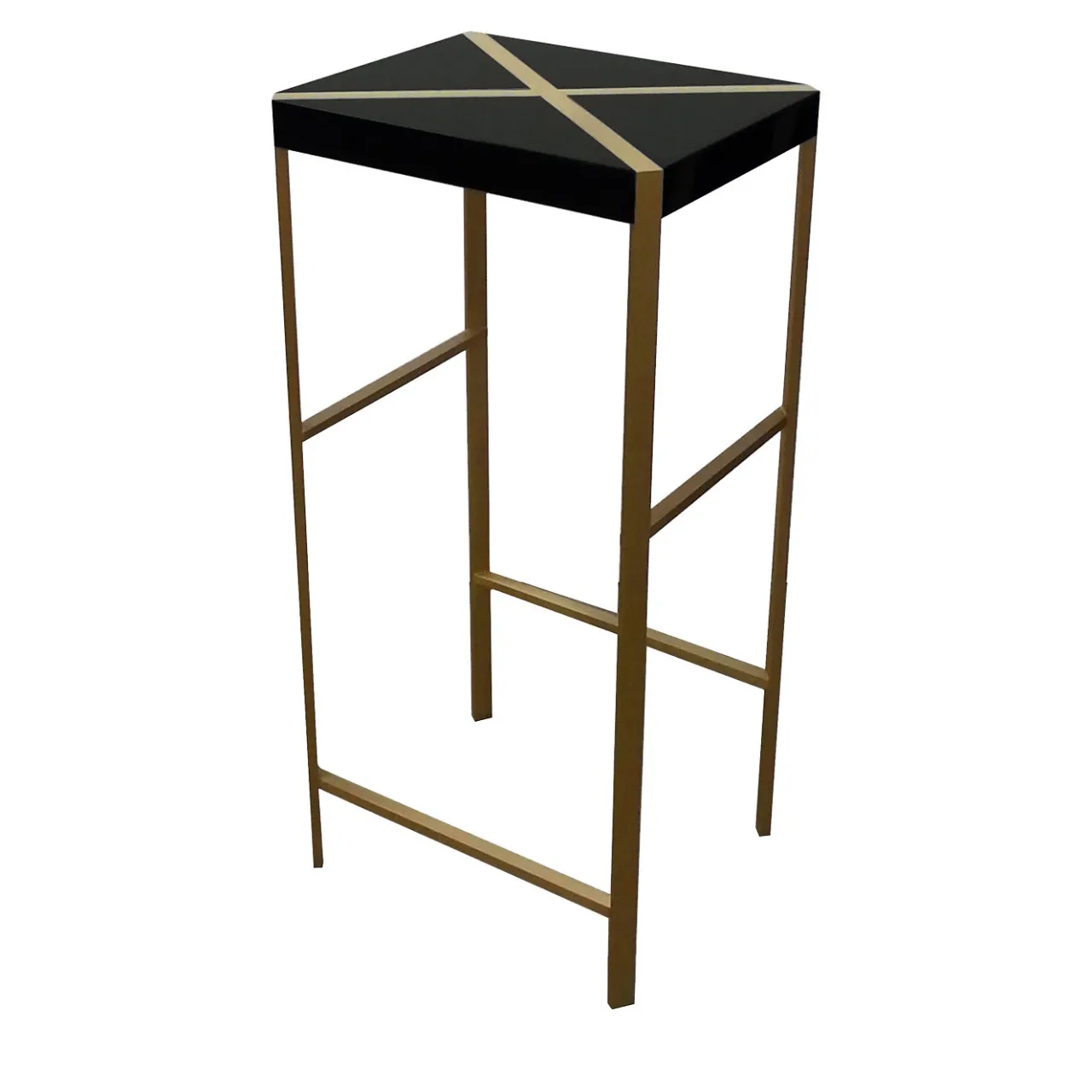 Questo sgabello di grande effetto si abbina a tutti i pezzi della collezione Metaphysics. Le sue gambe sono in ottone e il piano in legno, decorato con una croce diagonale in ottone, è rifinito con una lacca resistente applicata a mano, per un look minimalista ed elegante.