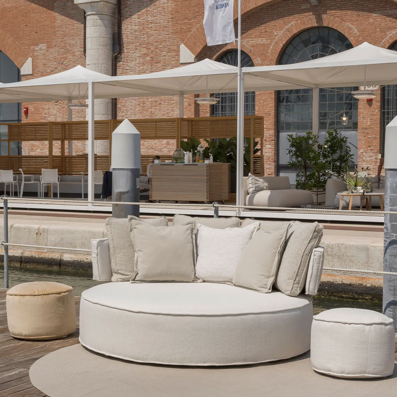 Lettino da esterno Patos rotondo in tessuto beige con cuscini*Villevenete Best