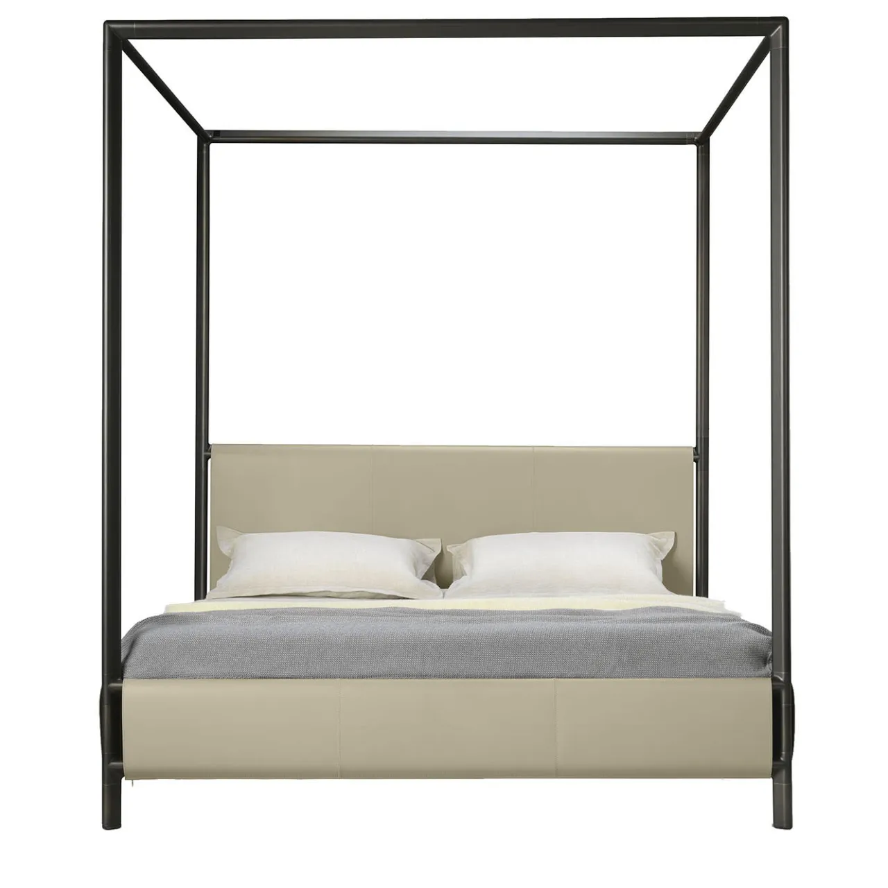 Disegnato da Stefano Giovannoni nell’ambito della Frame Collection, questo letto a baldacchino è caratterizzato da una forma minimalista e compatta, con giunzioni organiche abilmente lavorate a mano in una fusione di alluminio. Realizzato da mani esperte, è arricchito da un profilo letto e da un poggiatesta in pura pelle. La struttura del letto è realizzata con una miscela di alluminio e pelle. Per ulteriori dettagli, consultare il catalogo Artemest. Il prezzo comprende solo la struttura del letto e le doghe.