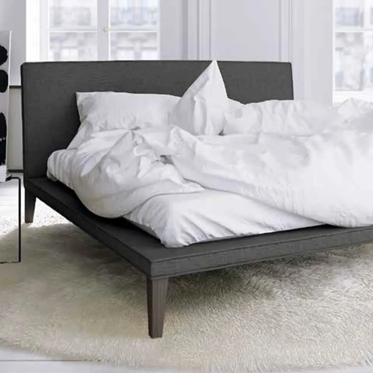 Questo letto, che ricorda l’essenza del buon dormire, offre senza sforzo componenti di alta qualità per un’esperienza senza pari. Disponibile con doghe in legno o pannelli ortopedici, la sua struttura in legno nero poggia su quattro piedi ad un’altezza di 32 cm, escluso il comodo materasso (200 x 200 cm). Sono disponibili altre misure, contattate il Concierge per conoscere le opzioni e i prezzi. Le doghe, il materasso e i cuscini del letto non sono inclusi.