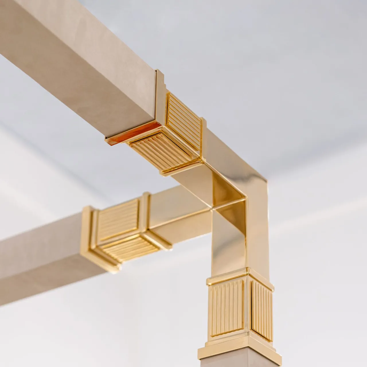 Opulenza e raffinatezza si fondono splendidamente in questo letto matrimoniale, reso straordinariamente romantico dal design a baldacchino. Combinando scintillanti dettagli in bronzo placcato oro 24 carati con vera pelle Nubuck bianca, rivela un inconfondibile fascino sartoriale ulteriormente enfatizzato dal motivo di ottagoni minuziosamente ricamati sul rivestimento in tessuto della testata. Un’aggiunta lussuosa alle camere da letto in stile classico.