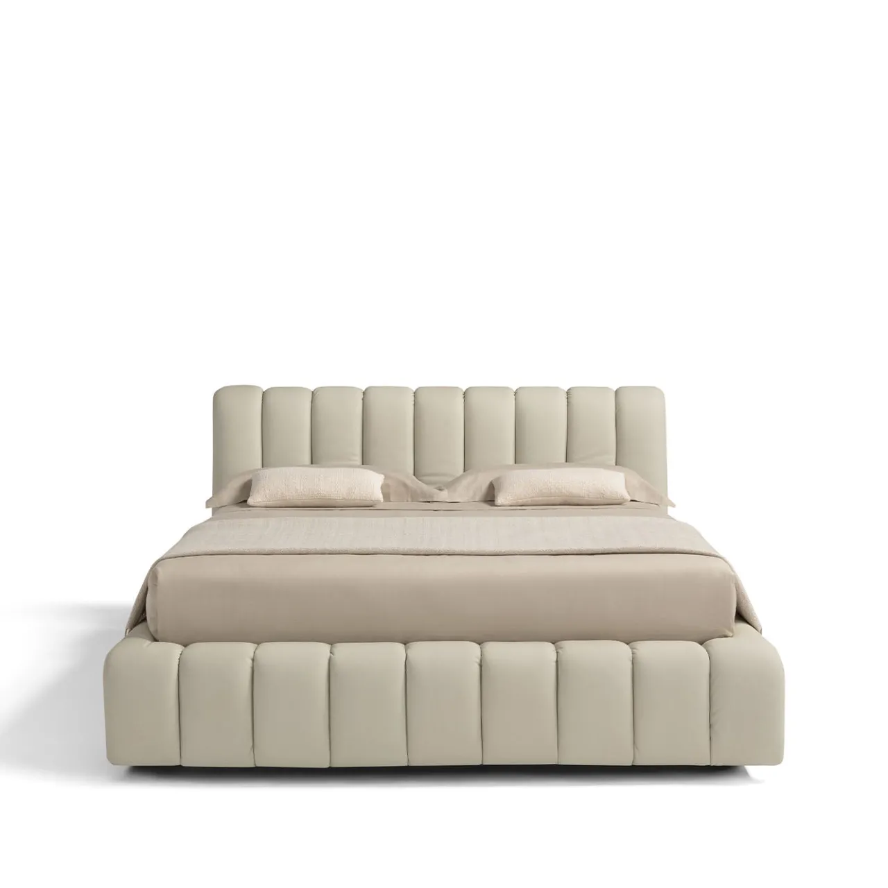 Scervino 1909 presenta un design elegante e moderno con una testiera e una pediera leggermente curve che mettono in mostra la trapuntatura verticale. Disponibile con o senza un compartimento per il deposito, offre una funzionalità versatile accanto alla sua estetica raffinata. Offerto in varie misure di materasso, il telaio del letto esalta qualsiasi ambiente camera da letto. Materasso, biancheria da letto e cuscini non sono inclusi. Il prezzo esposto si riferisce alla versione con contenitore.